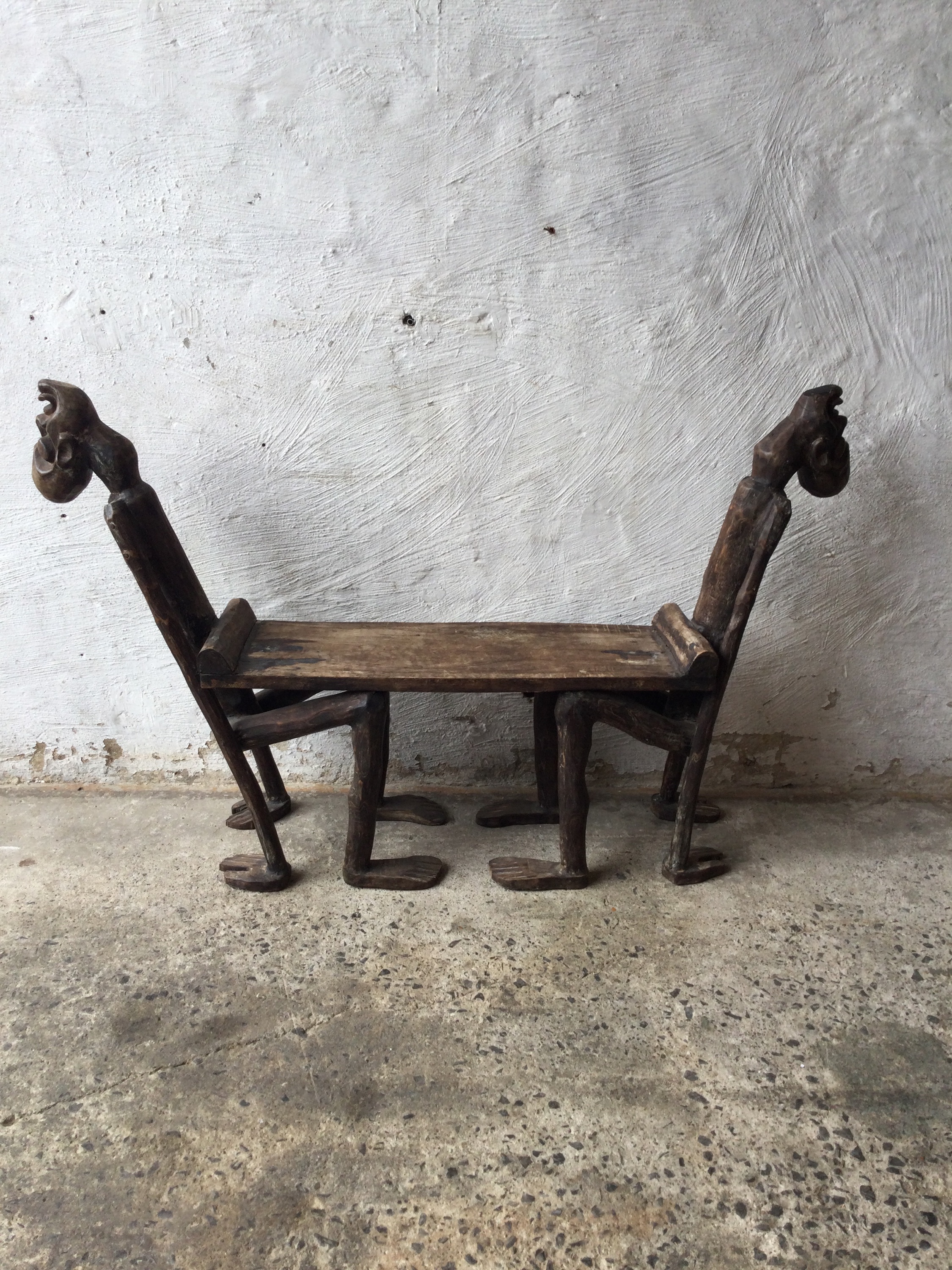 Authentic hand-carved medicine man tribal bench from West Africa.