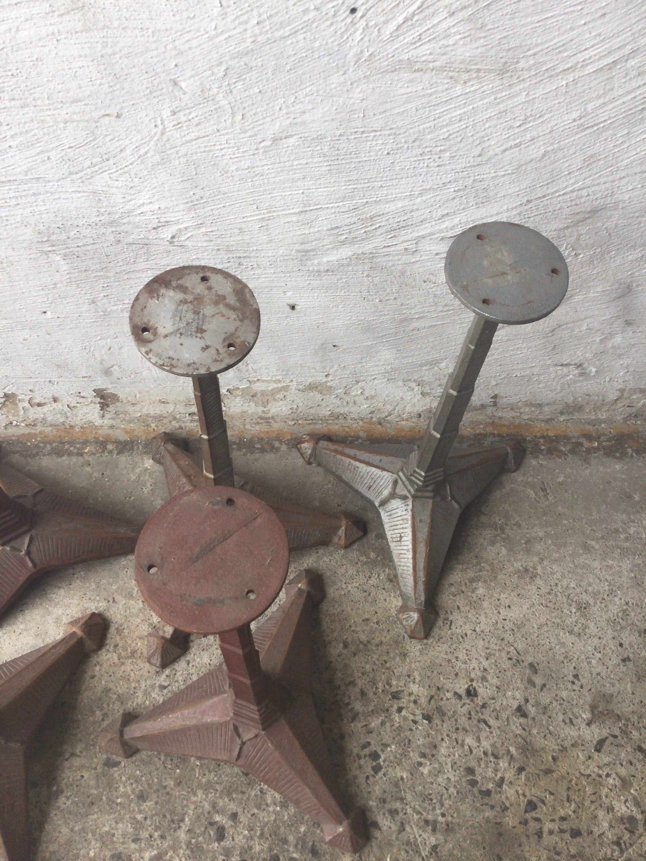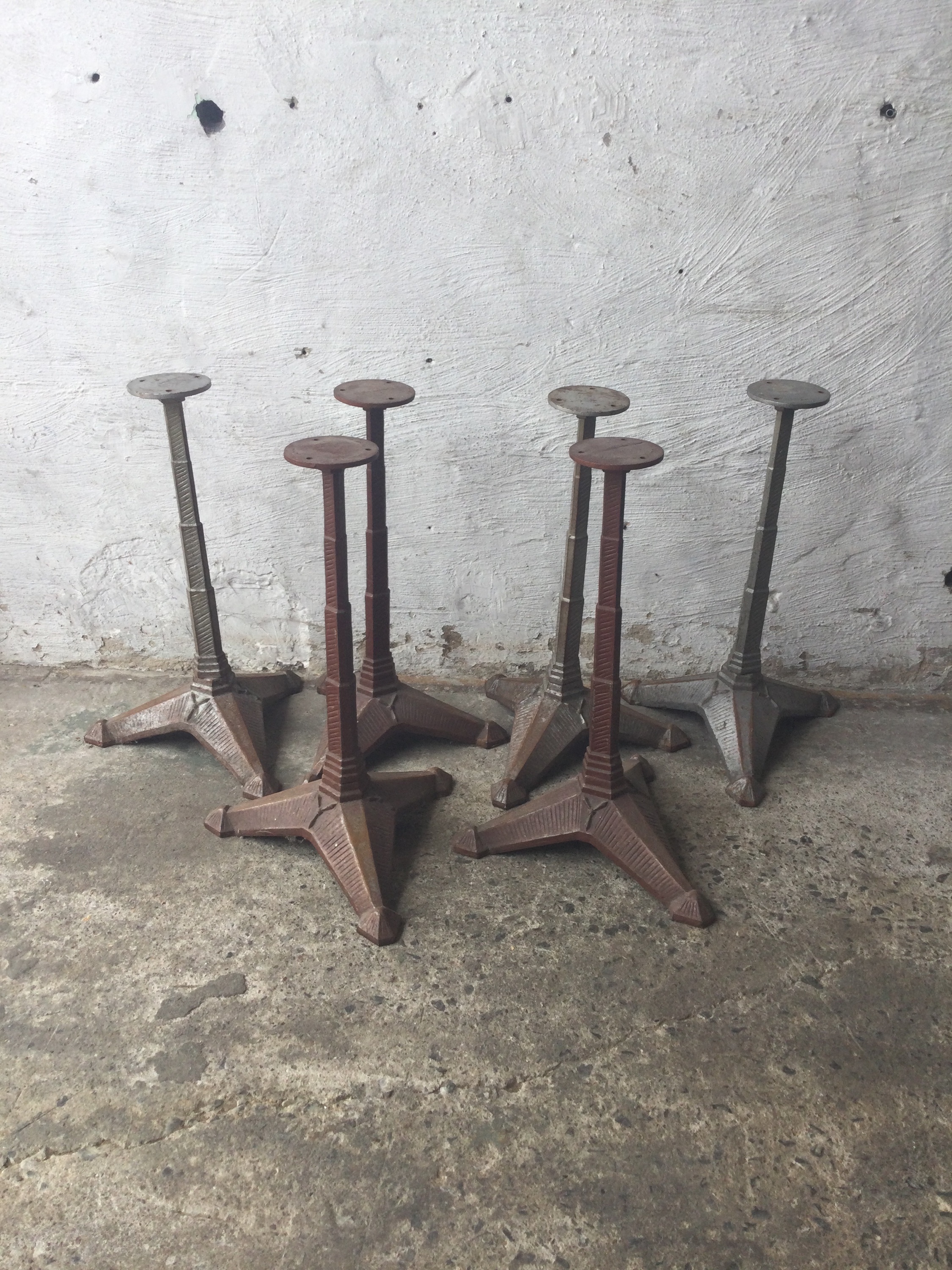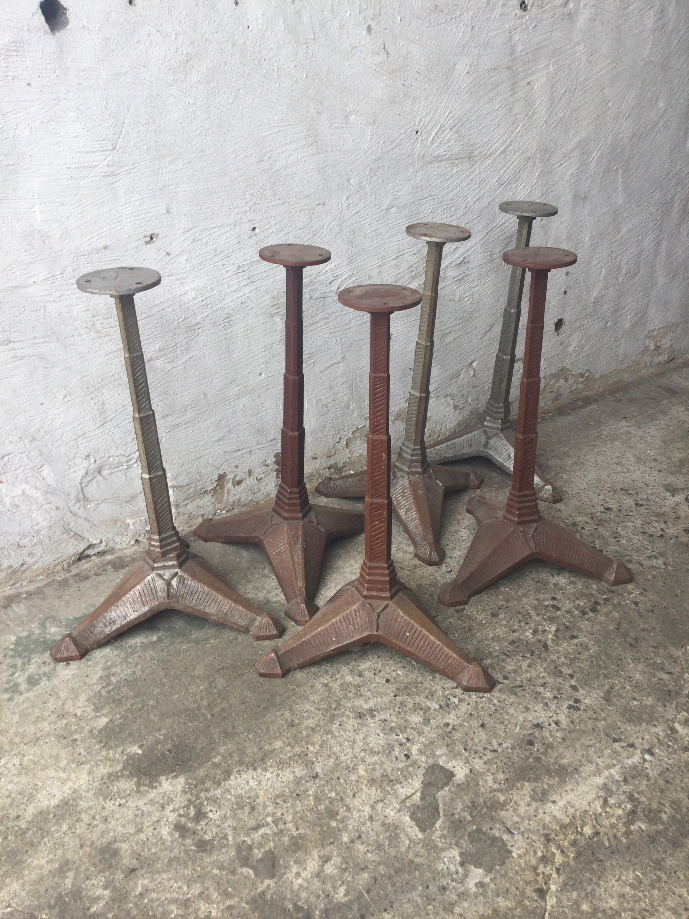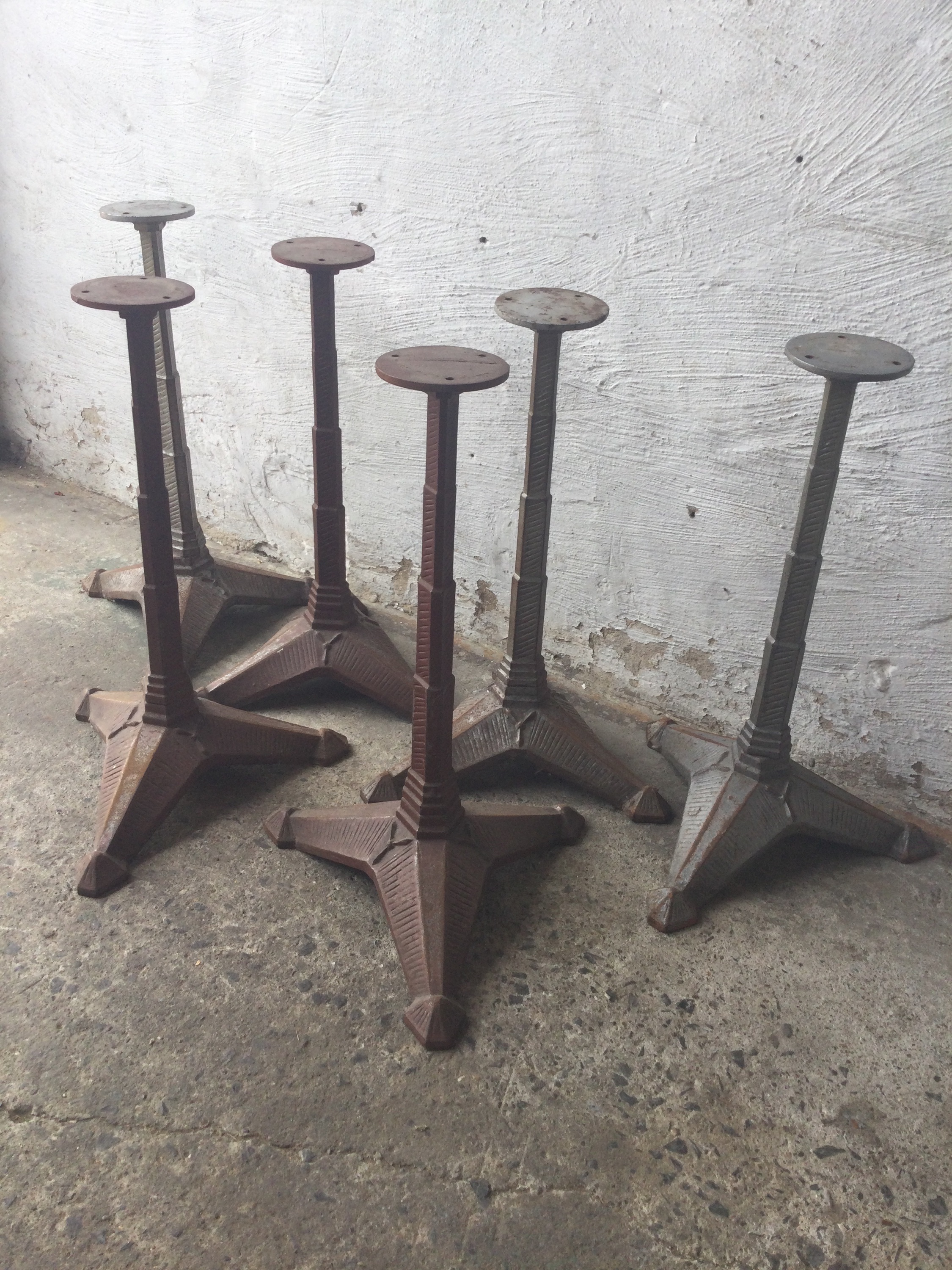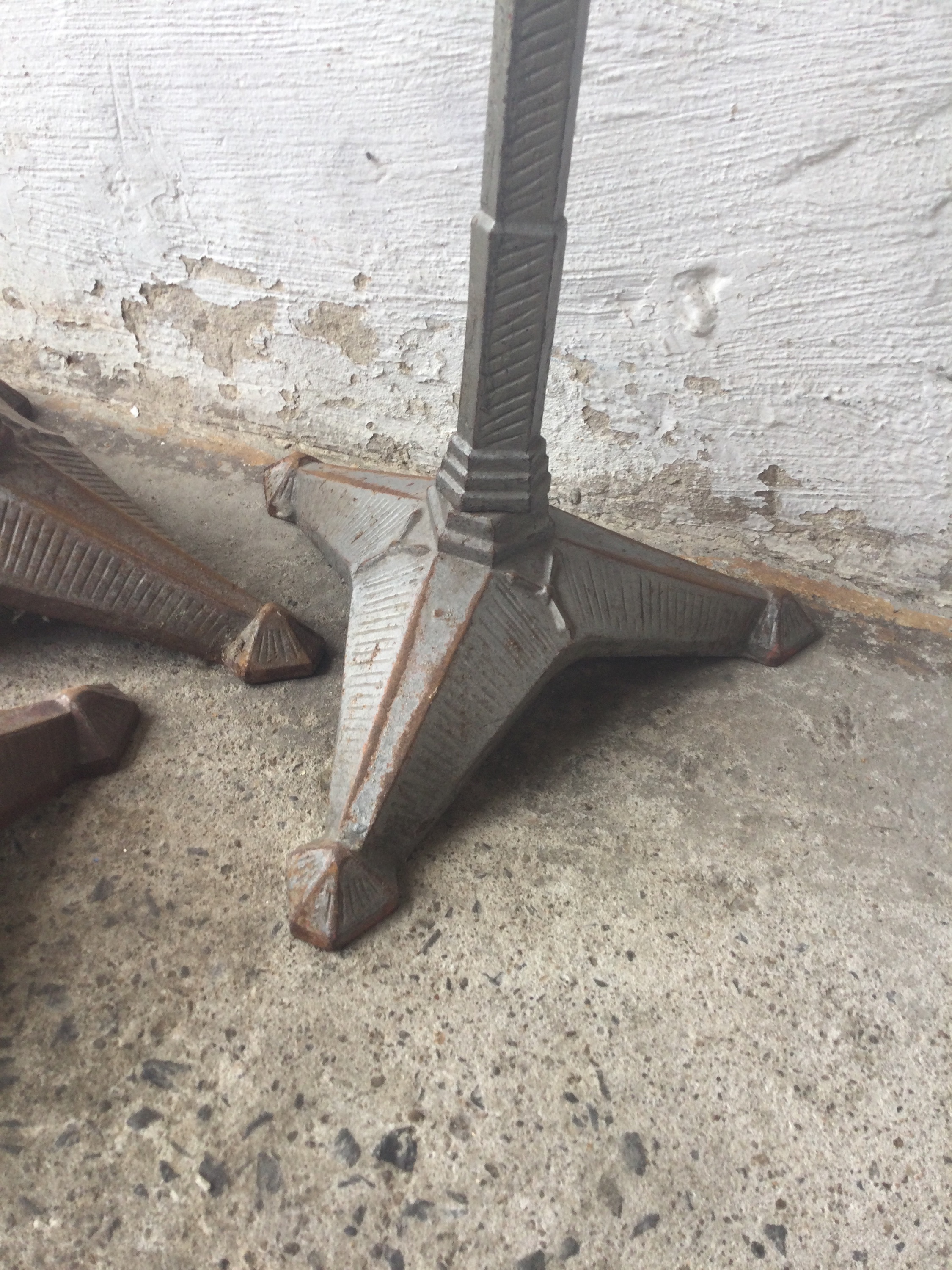 Art Deco table bases, early 20th century cast iron with superb details.
