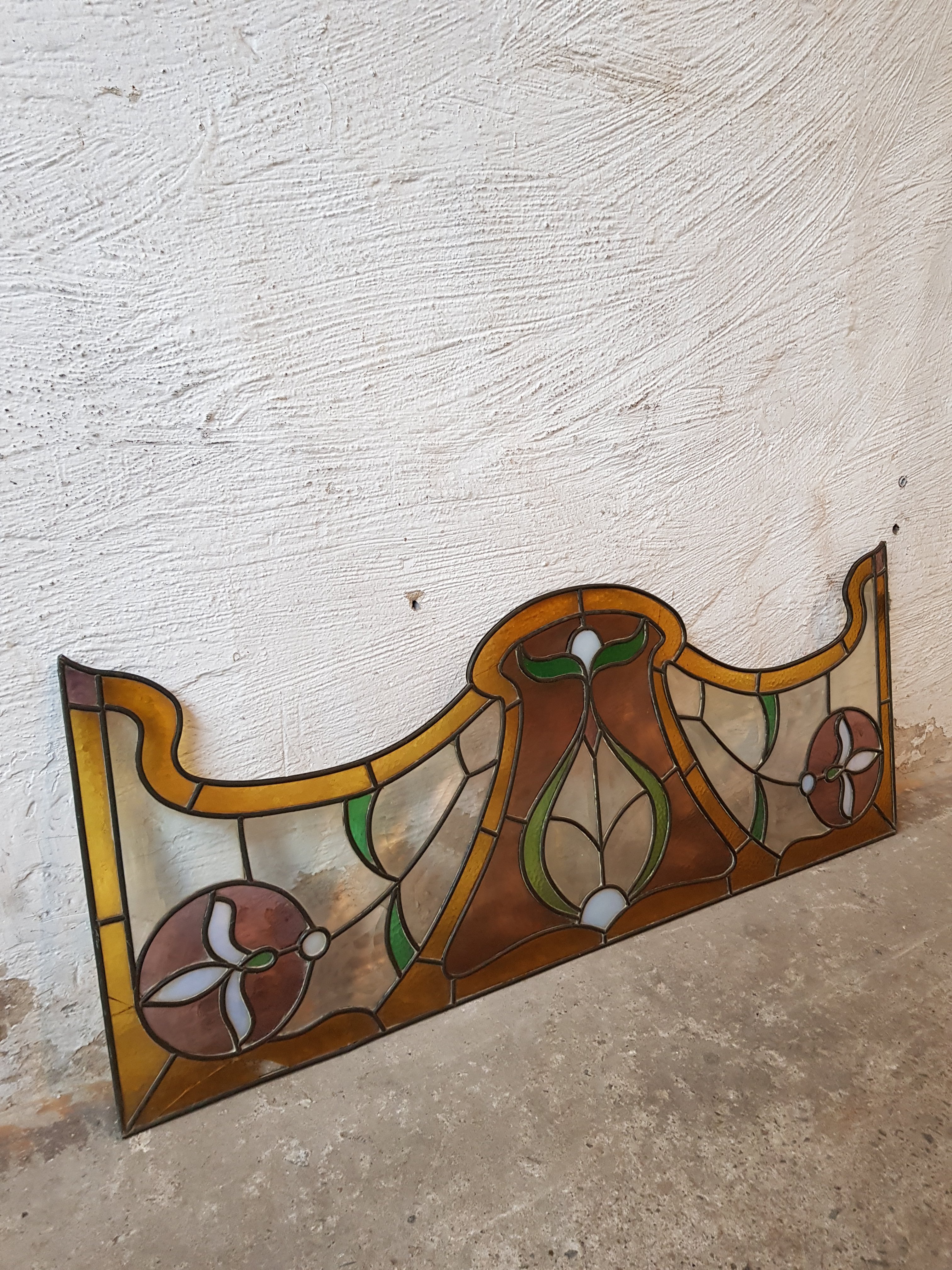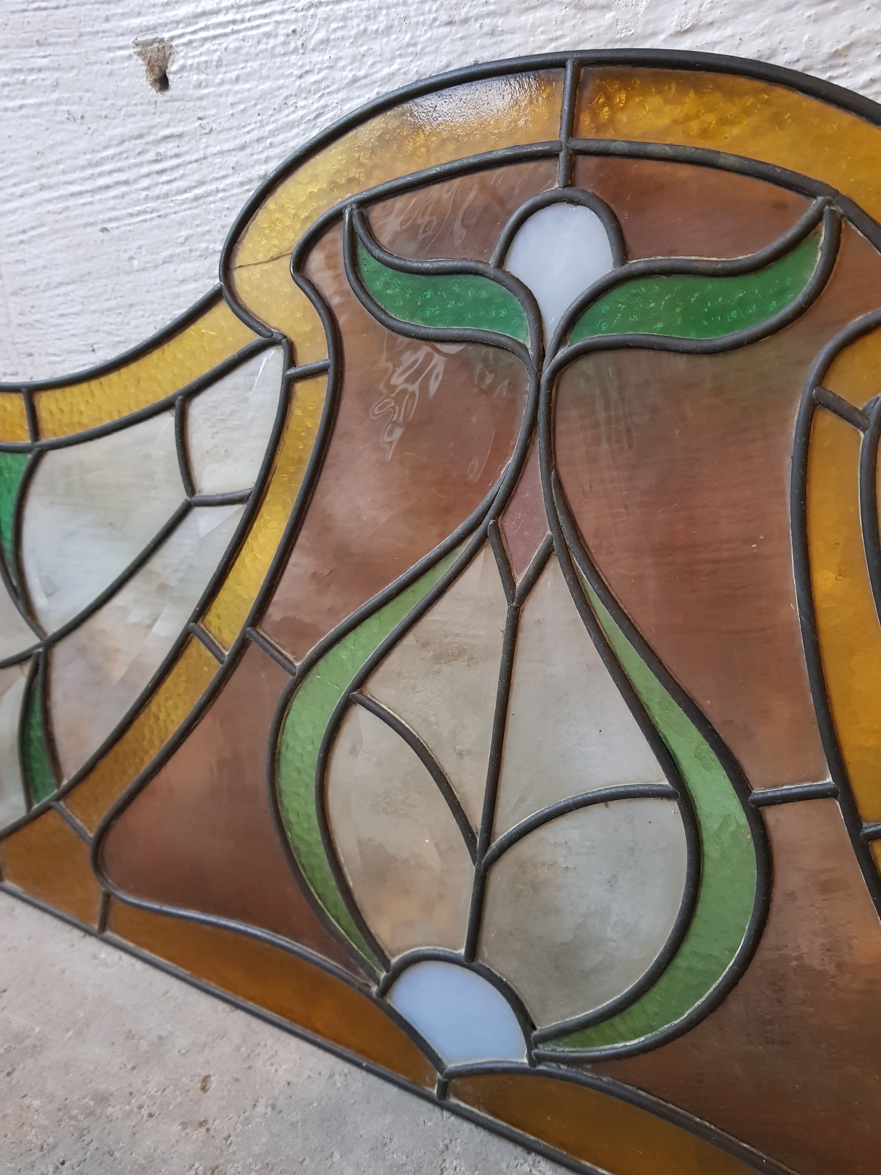 art nouveau stained glass ,nice coulour and shape a pity there are little defects .