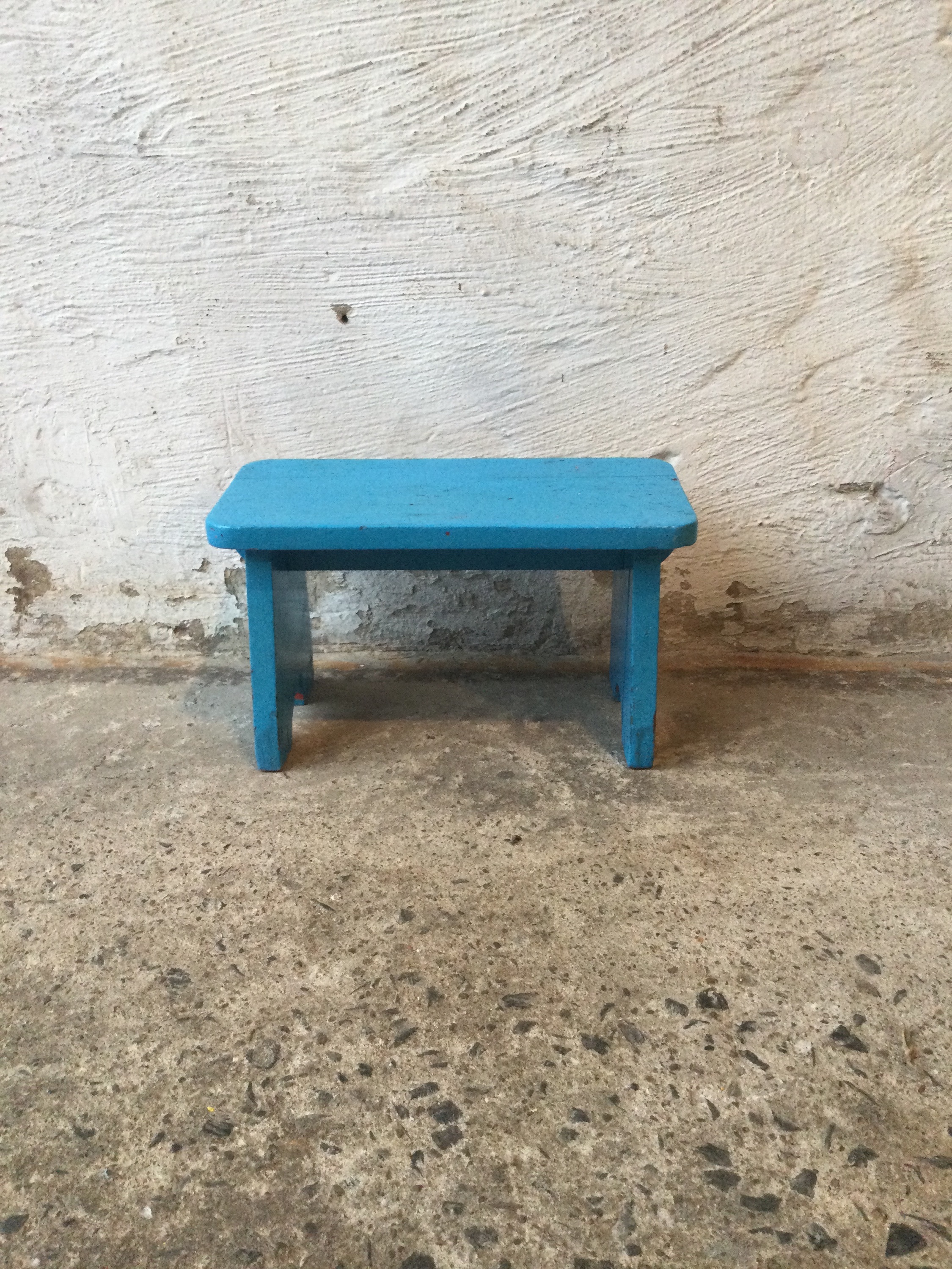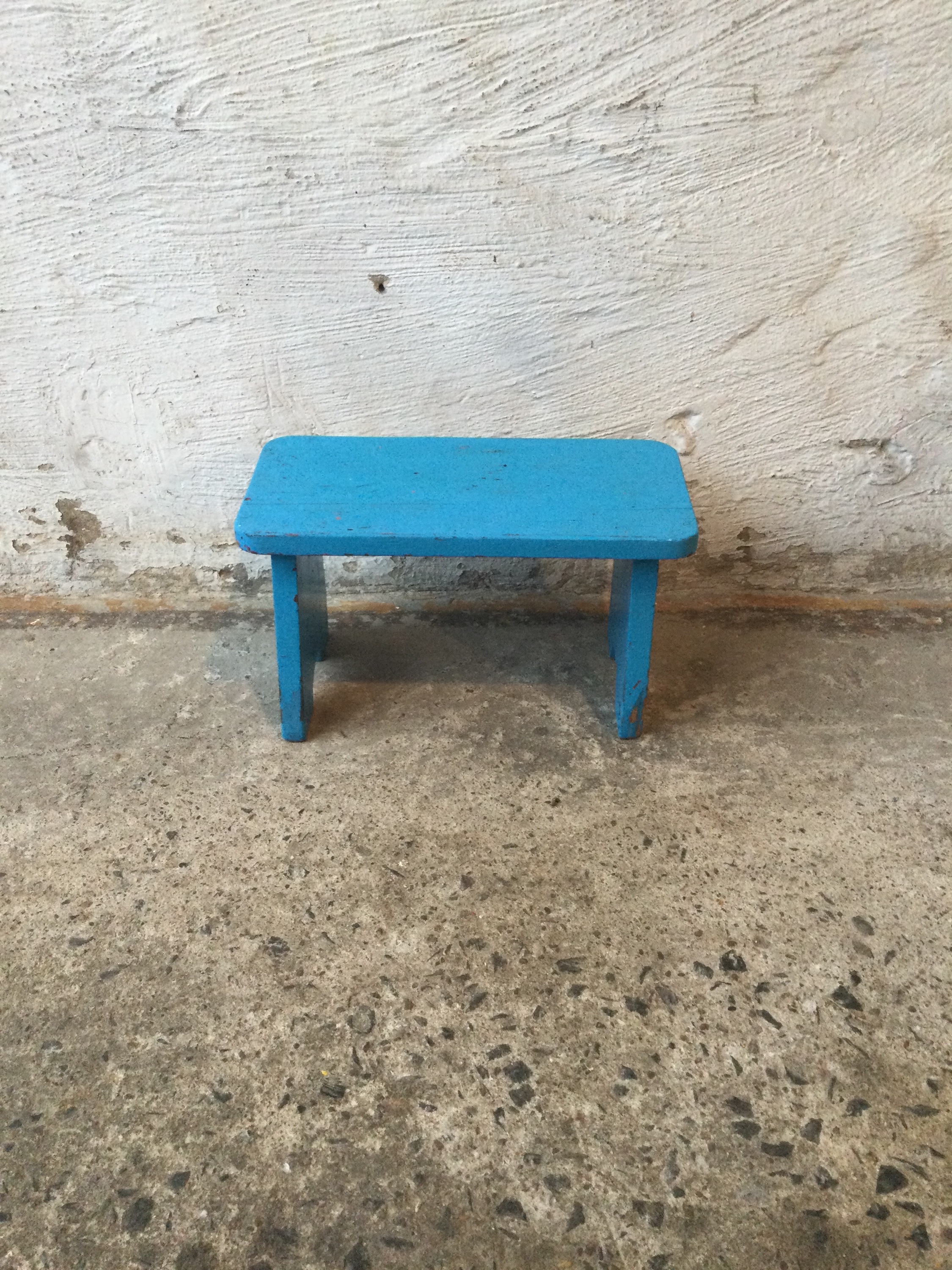 Blue stool, has a repaired crack on the side as seen on the photo.