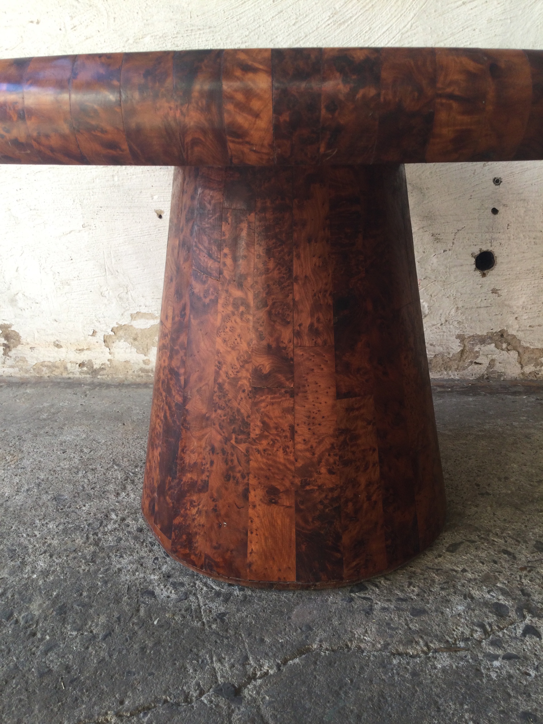 large round Art Deco coffee table veneered in Thuya wood.
