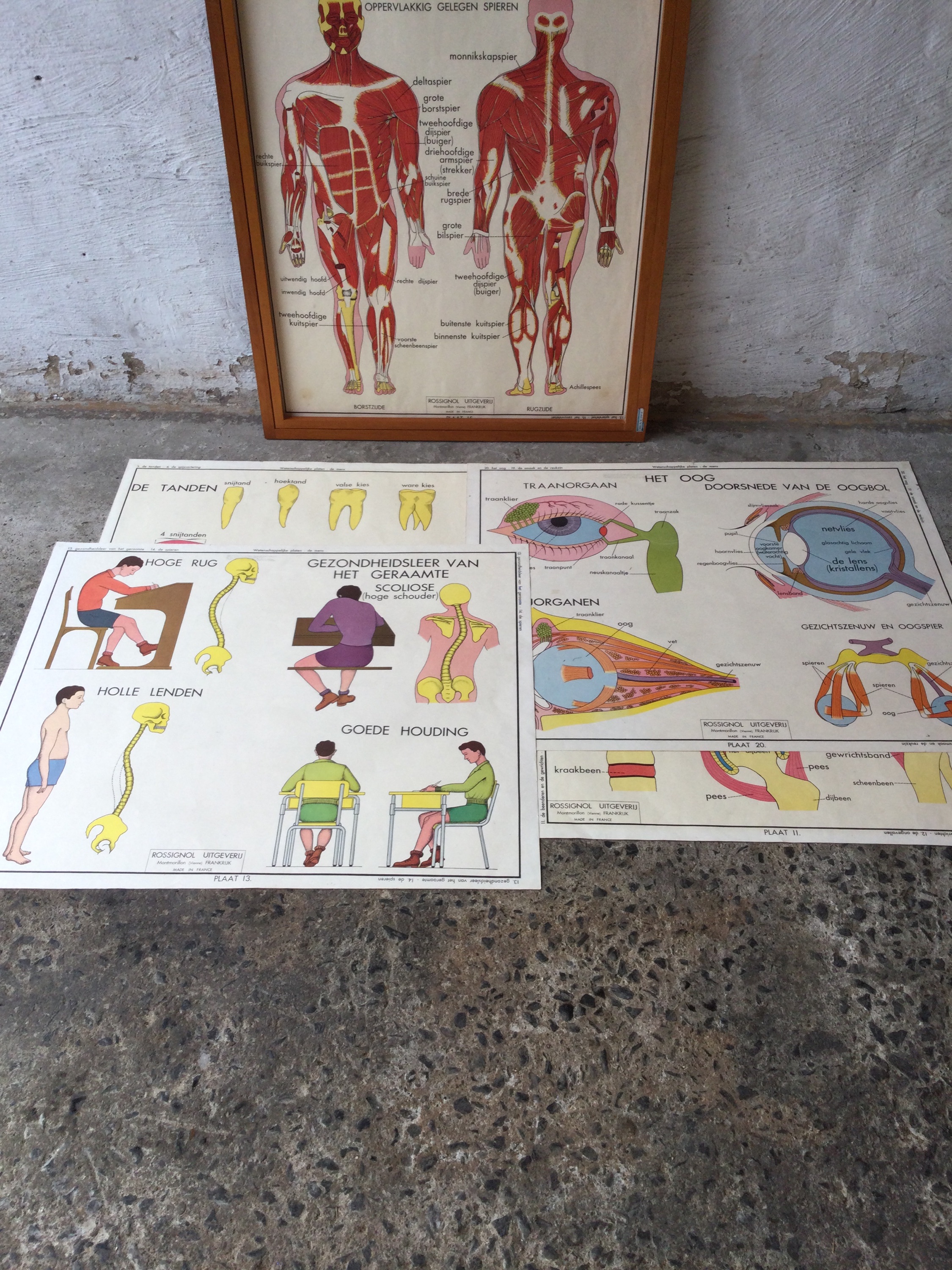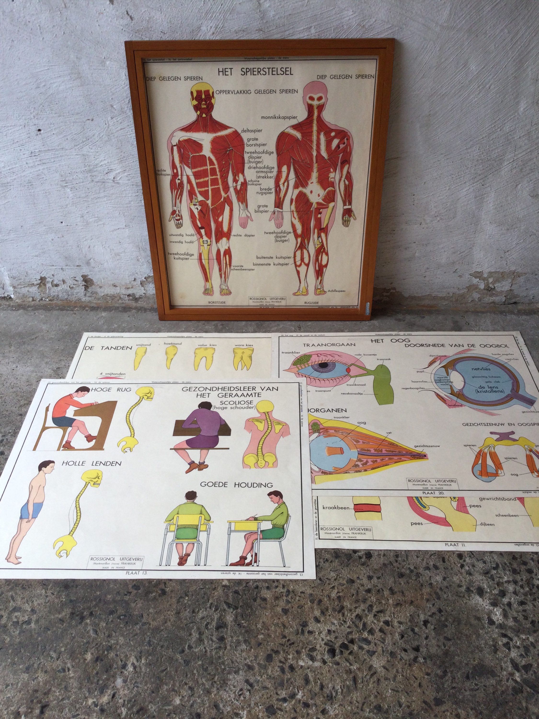 Didactic cards for educational purposes in wooden frame made by Baert.