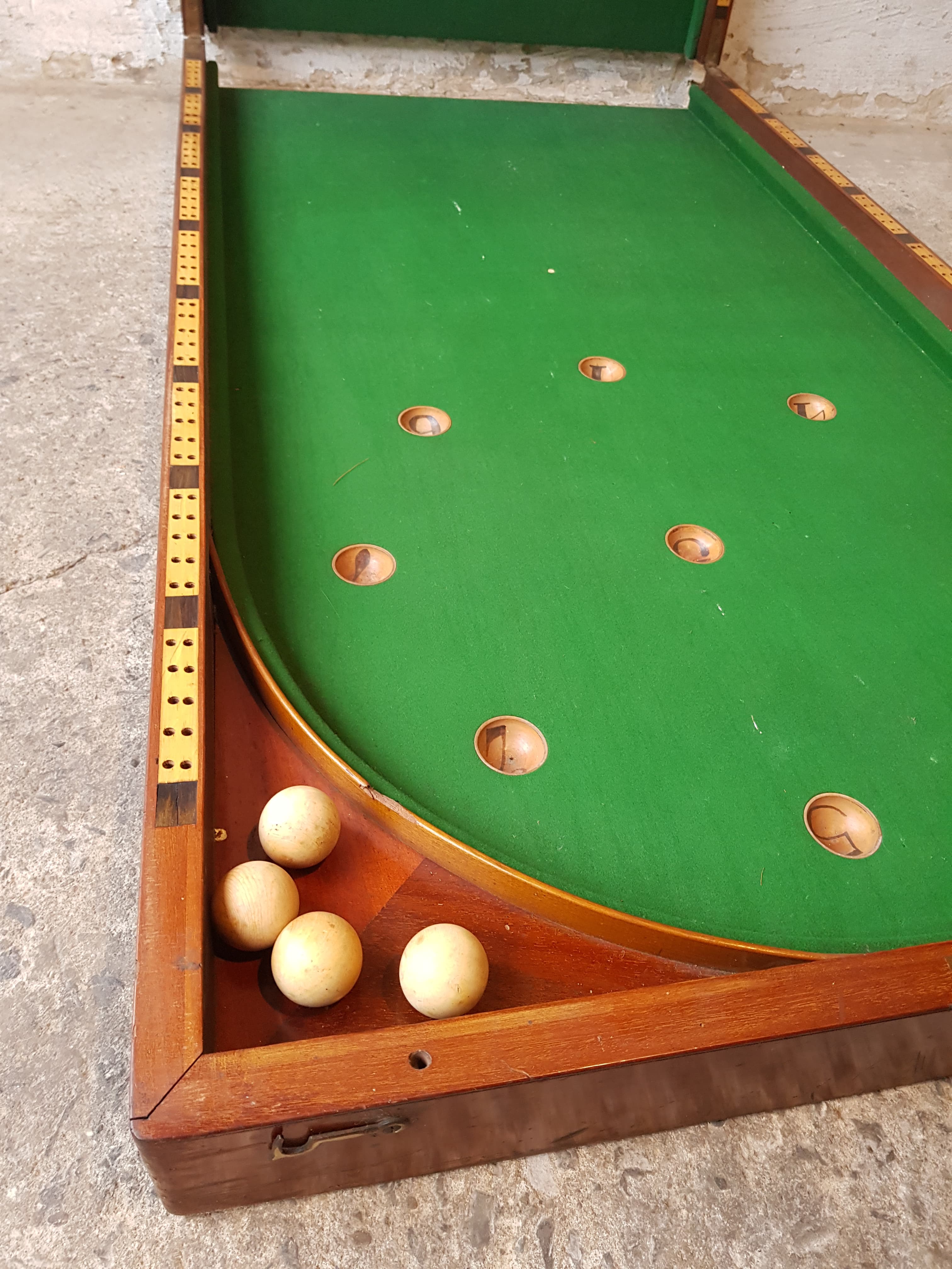 Folding Bagatelle is a biljard like game played by points.