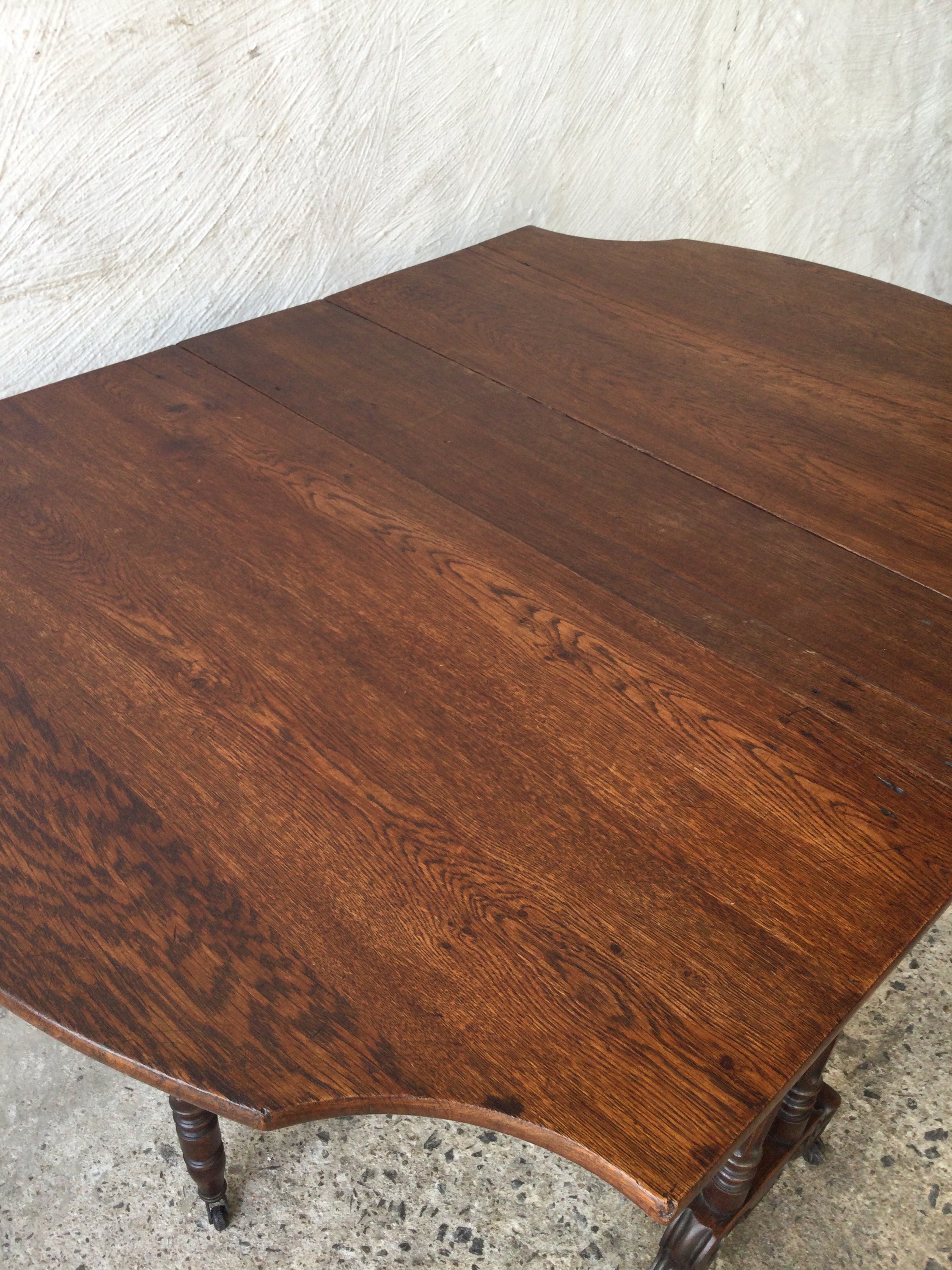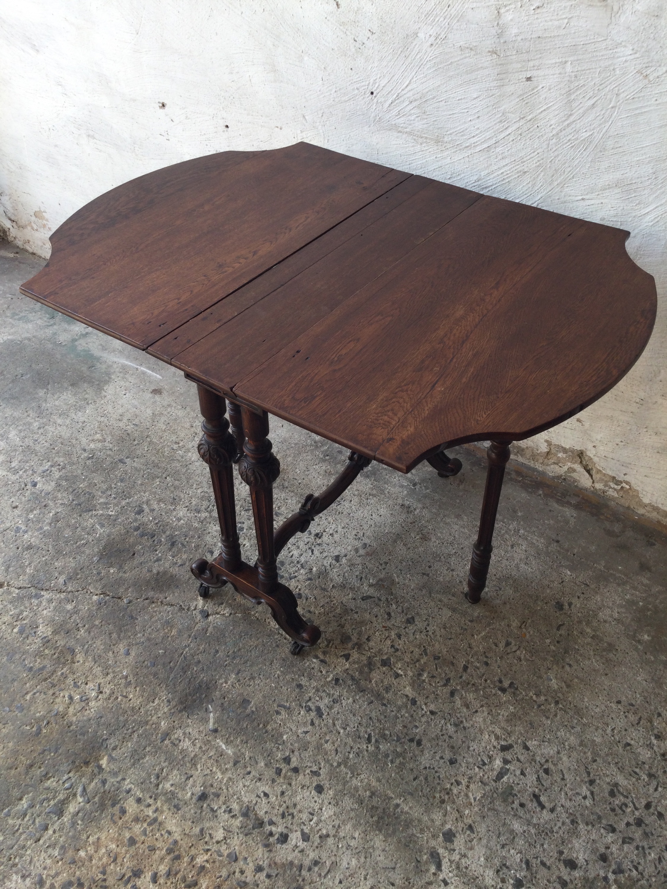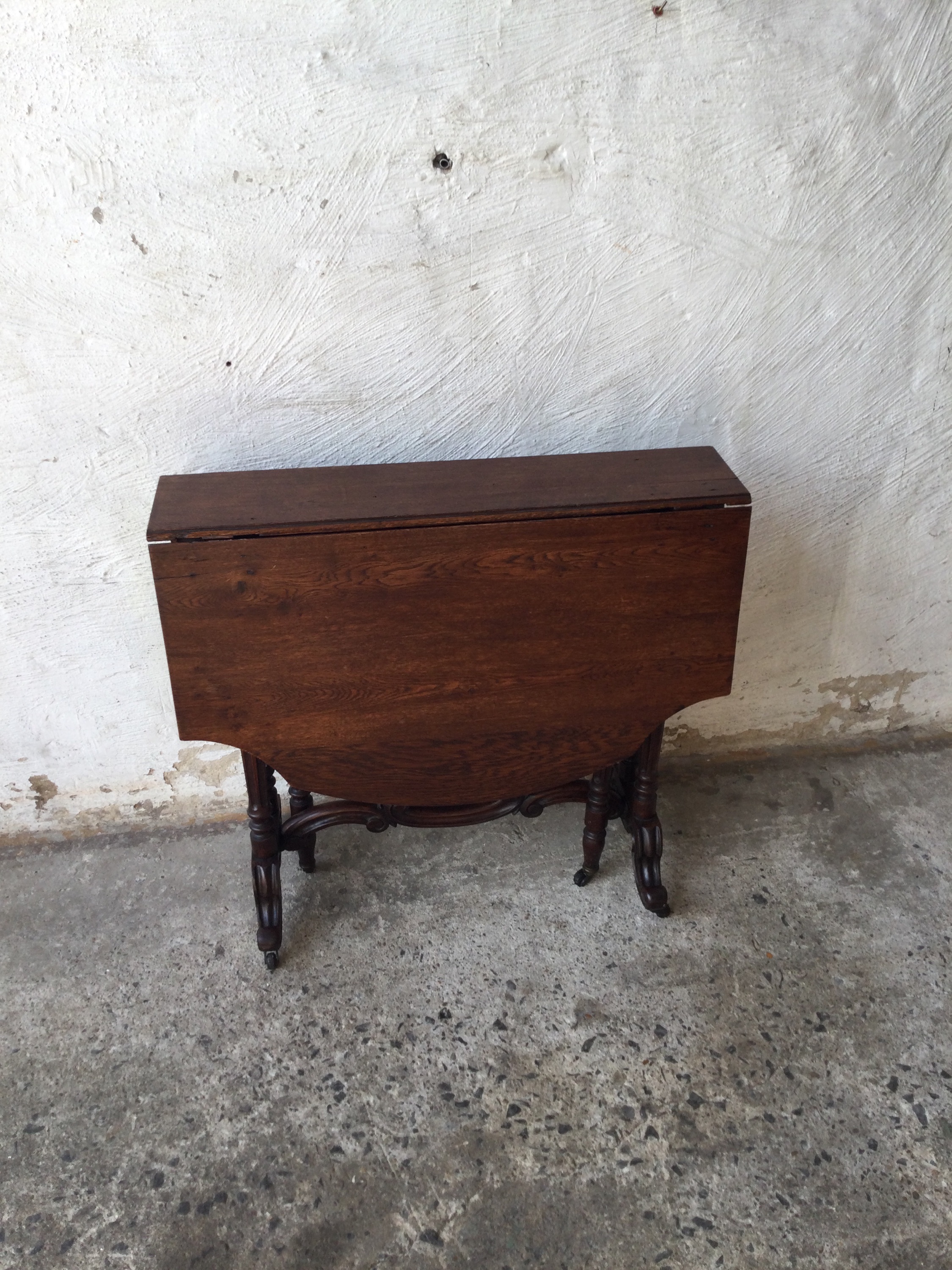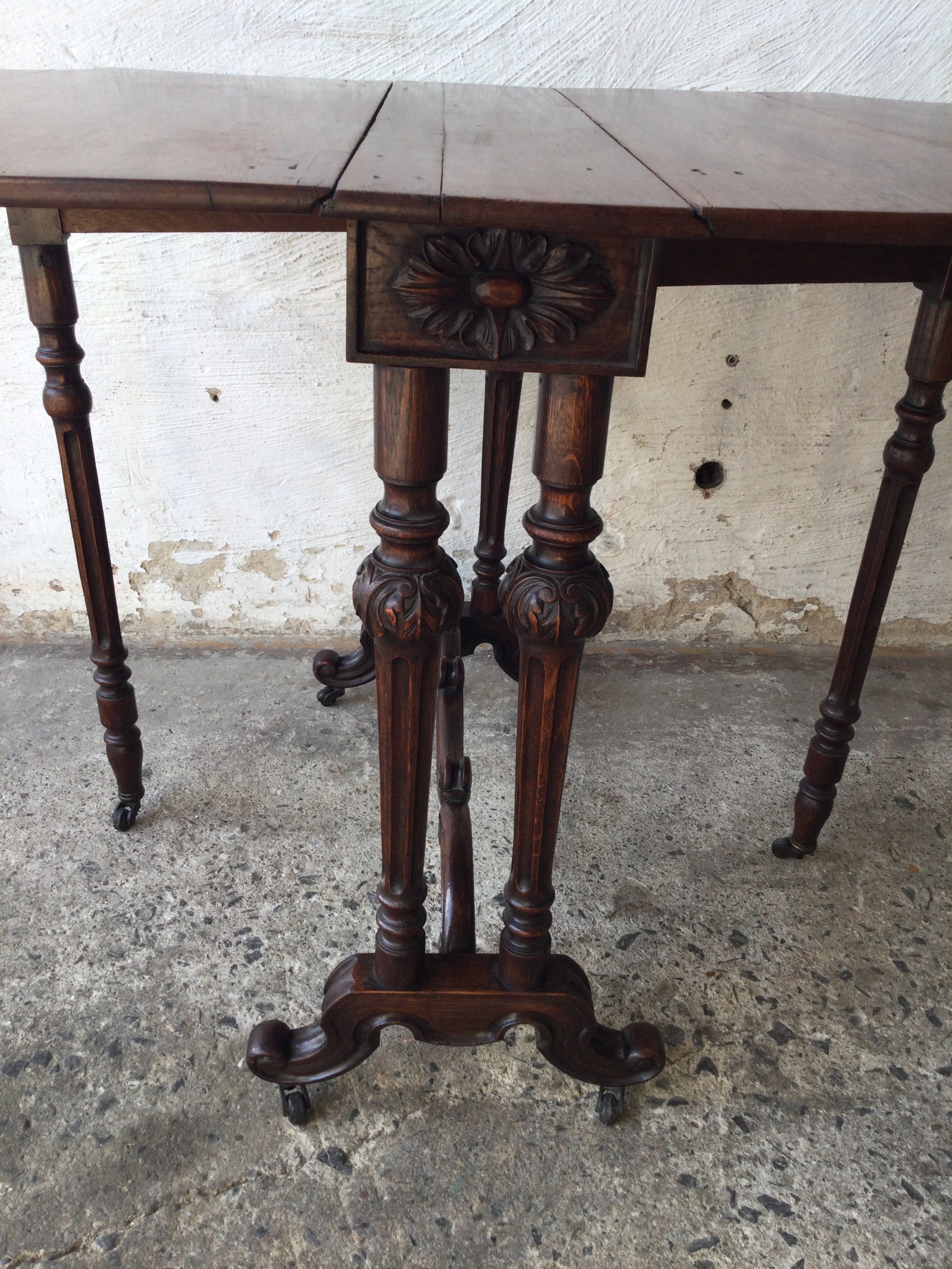 French wooden folding table on wheels.