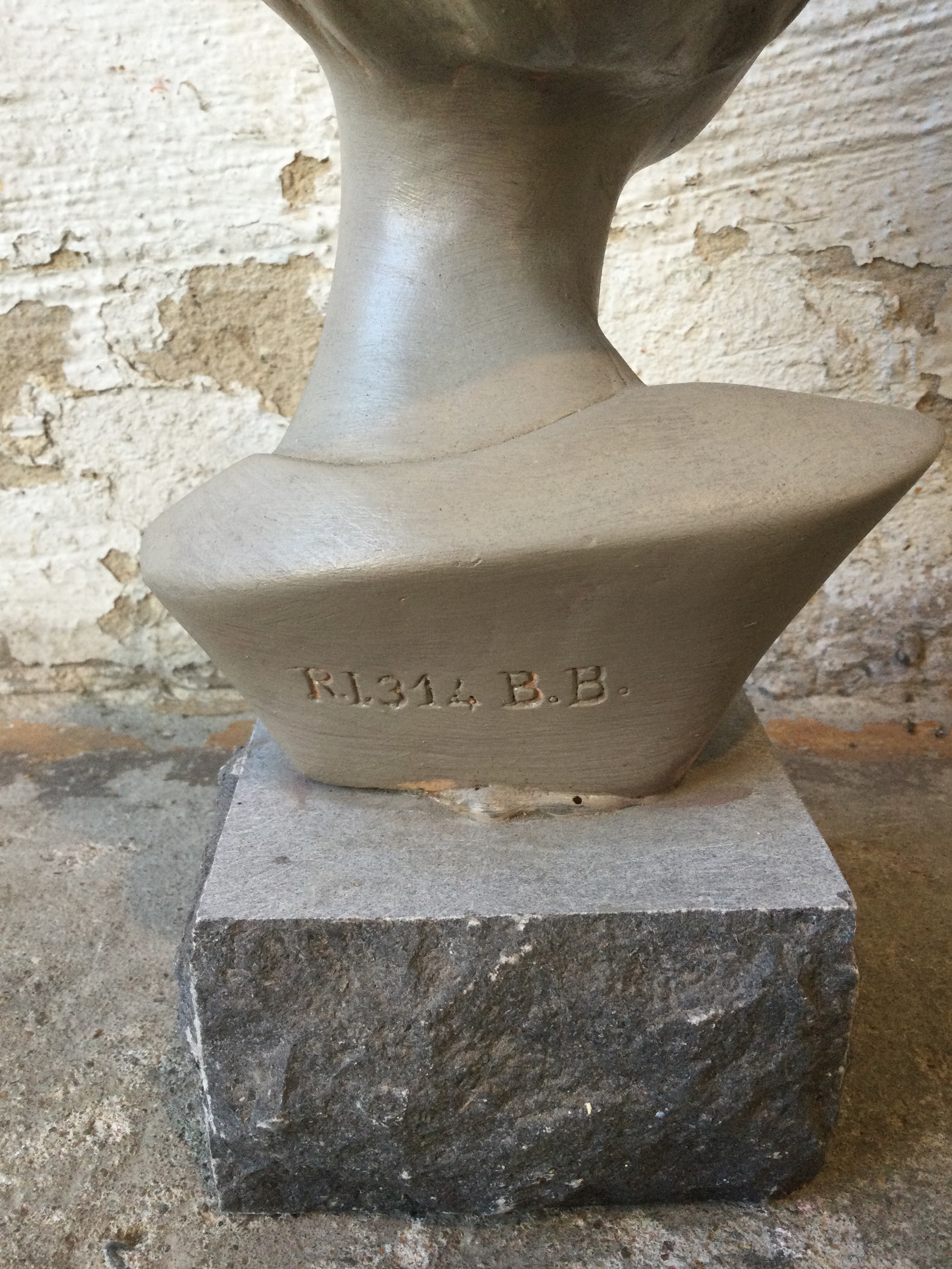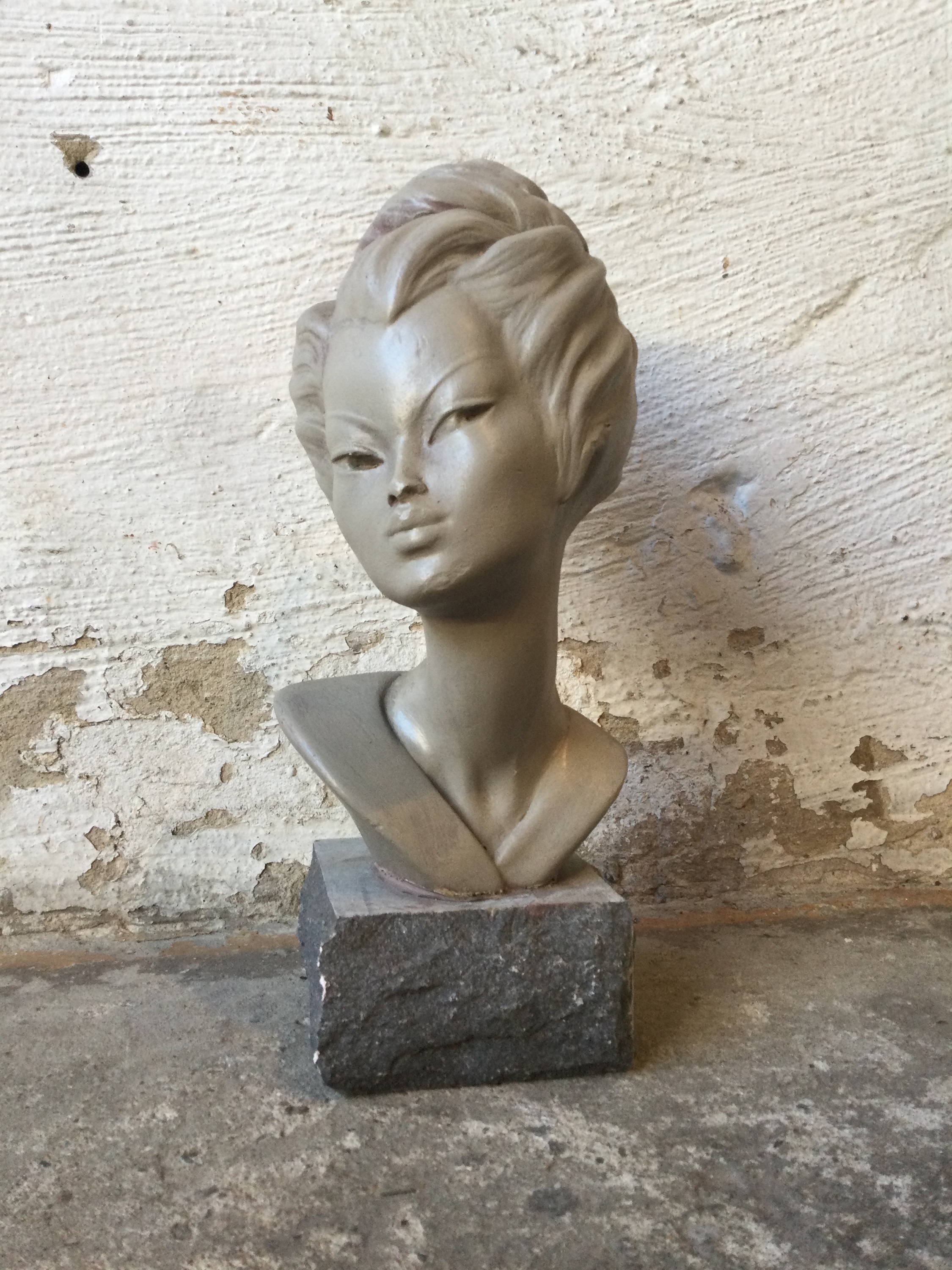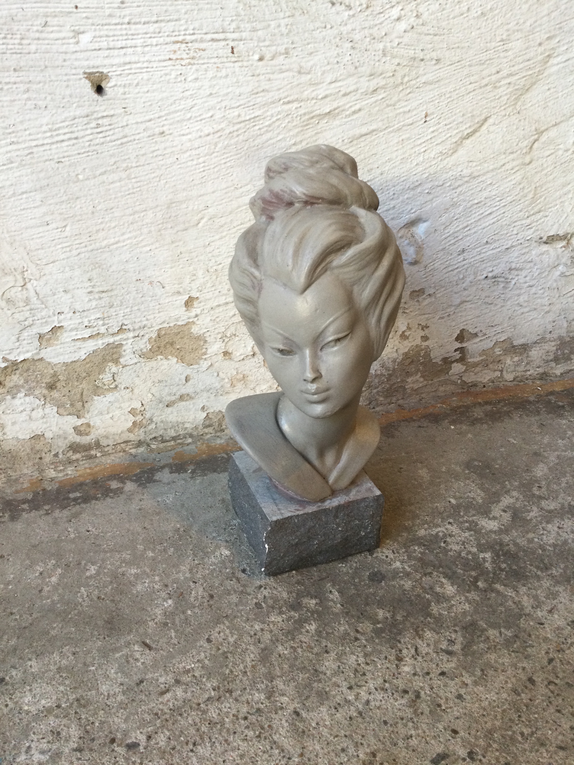 Geisha figurine in lime on a granite base.