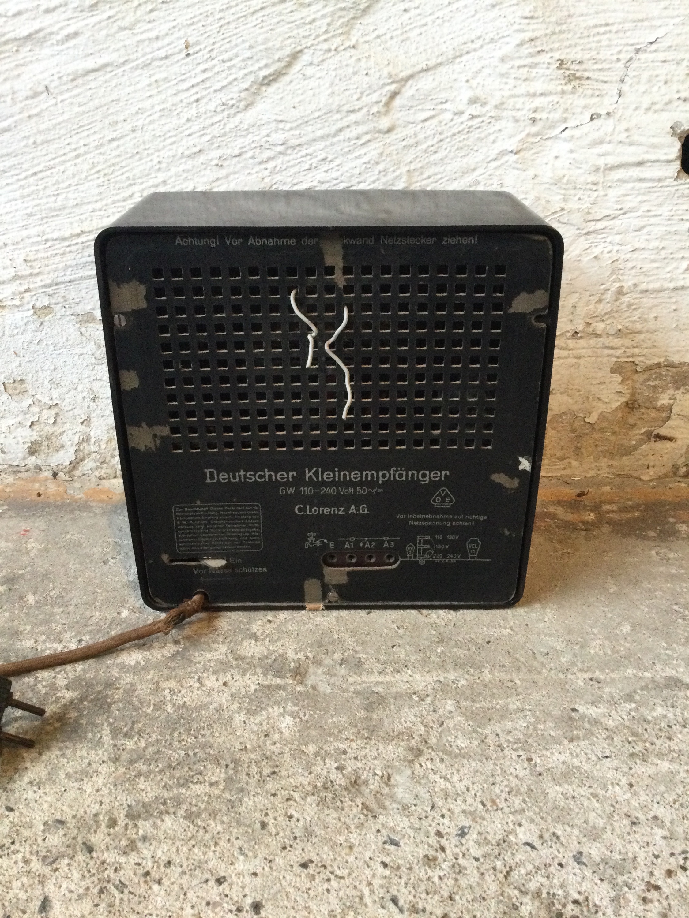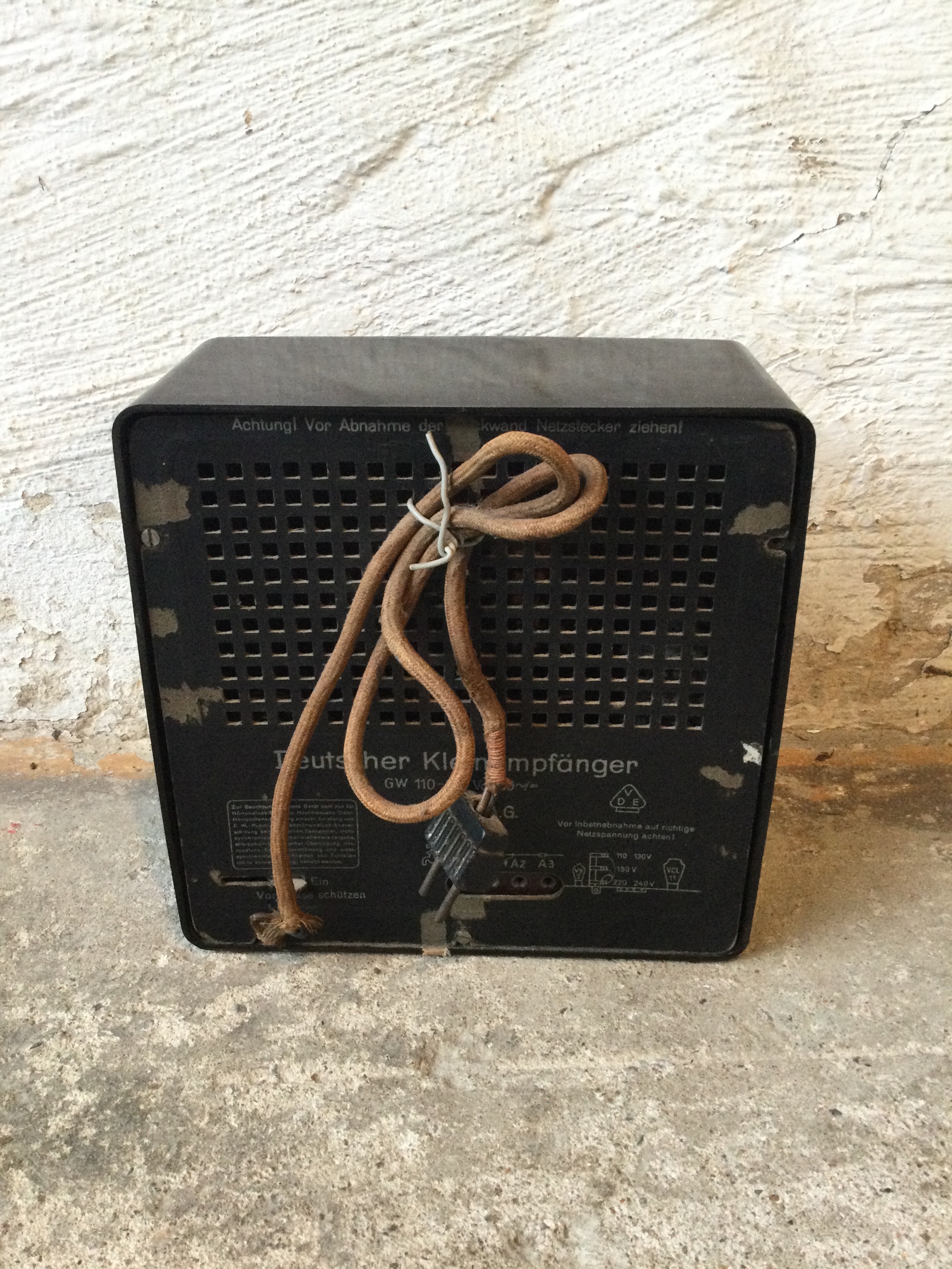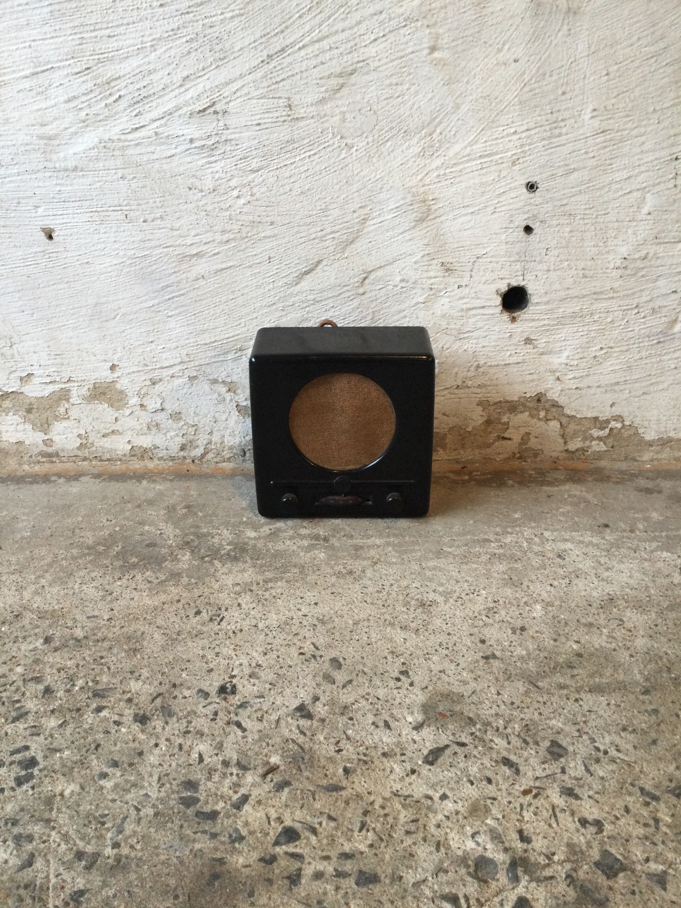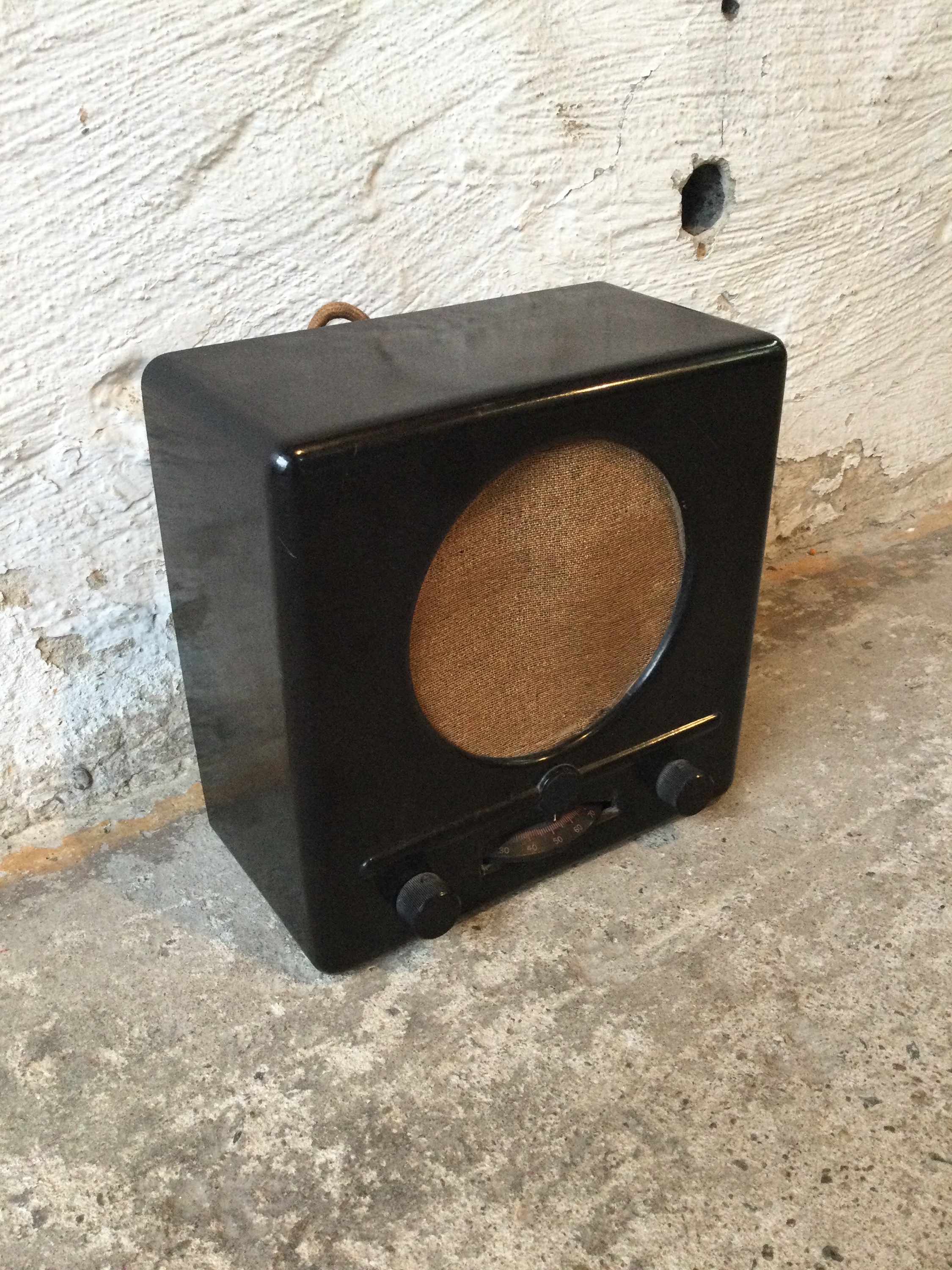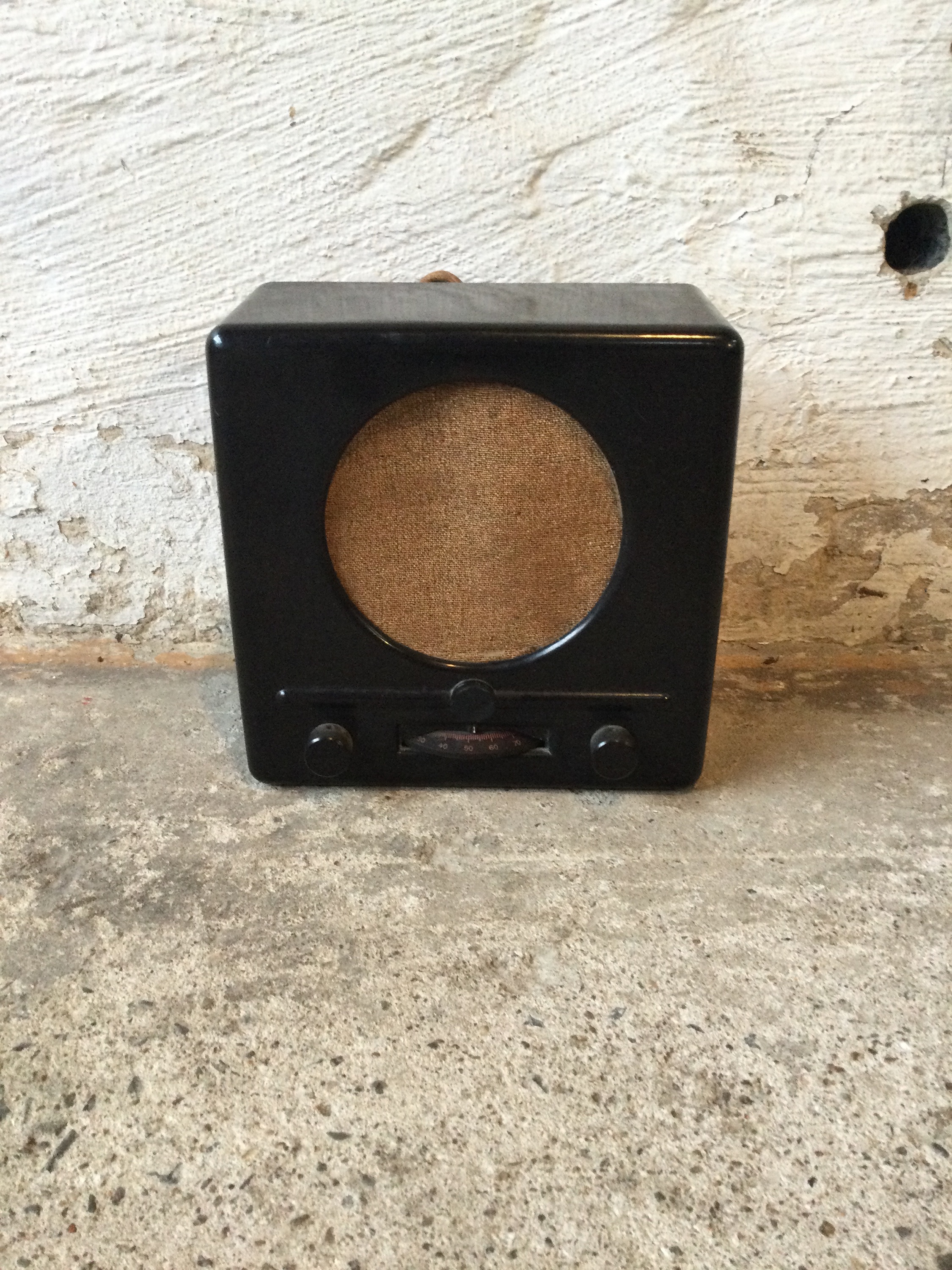 Small German radio in Bakelite, also know as the German little set was used as a propaganda tool before and in the Second World War. Designed in 1933 and made circa 1938.