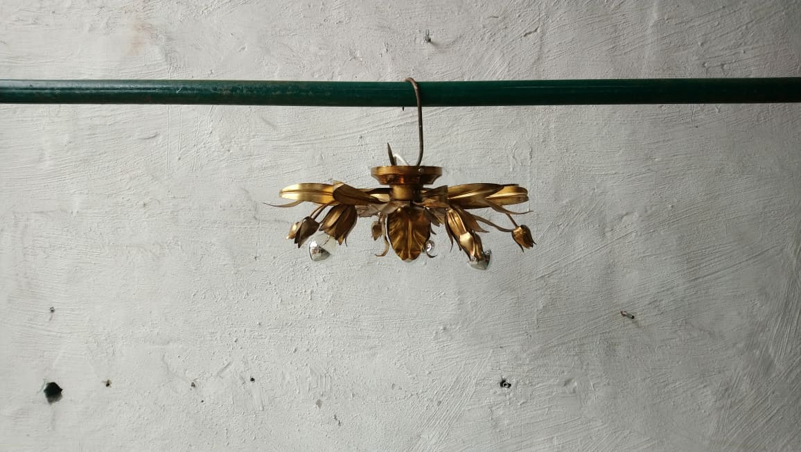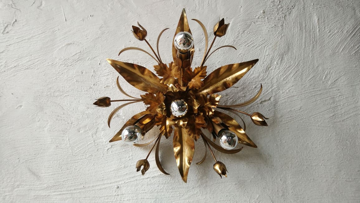 Golden leafs and flowers ceiling light from the late 20th century There are four light fictures all in working condition