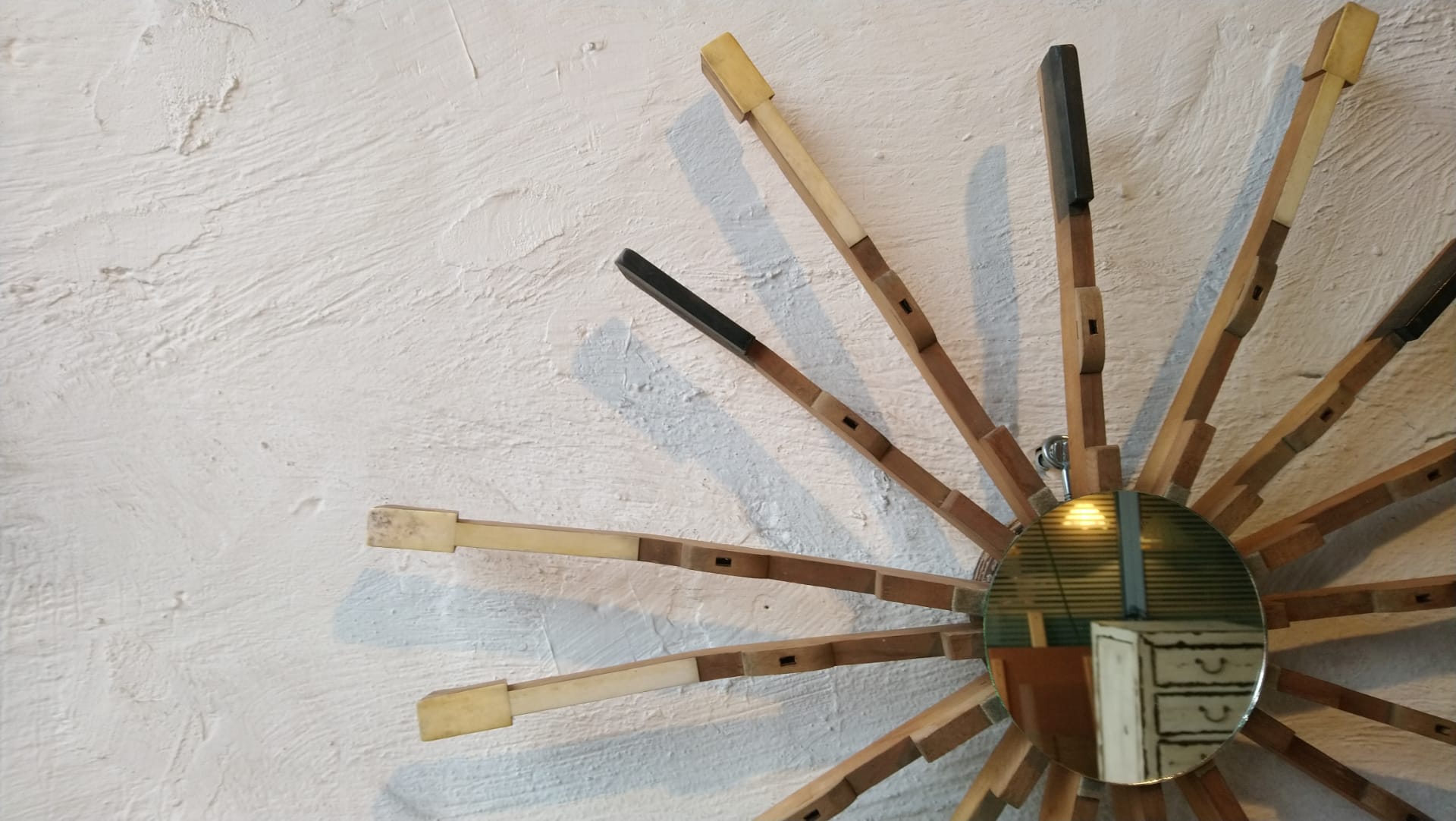 Sun mirror made by us out of old piano keys and an old mirror