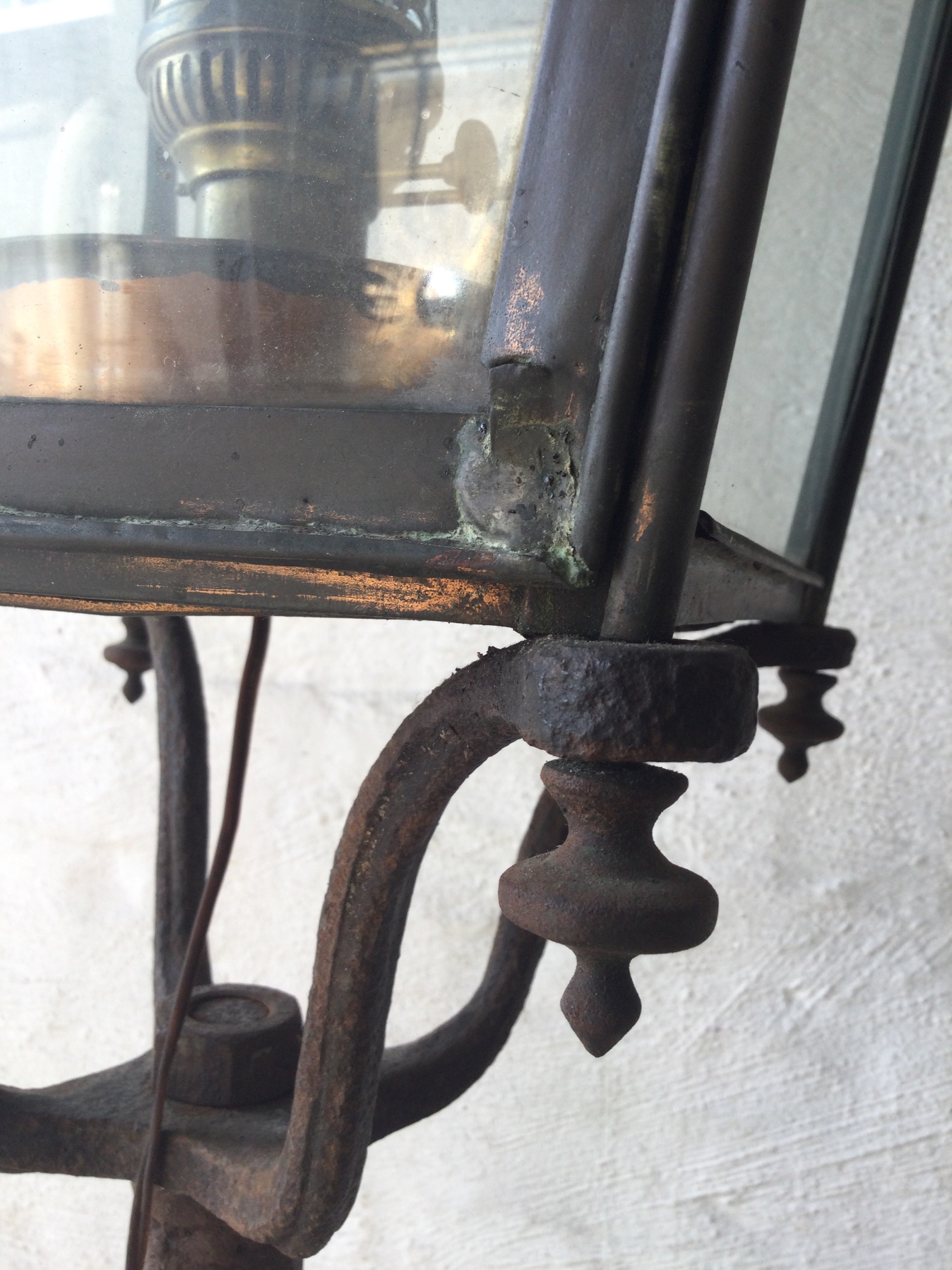 This old lamppost is converted from a oil lamp to a electric lamppost,
