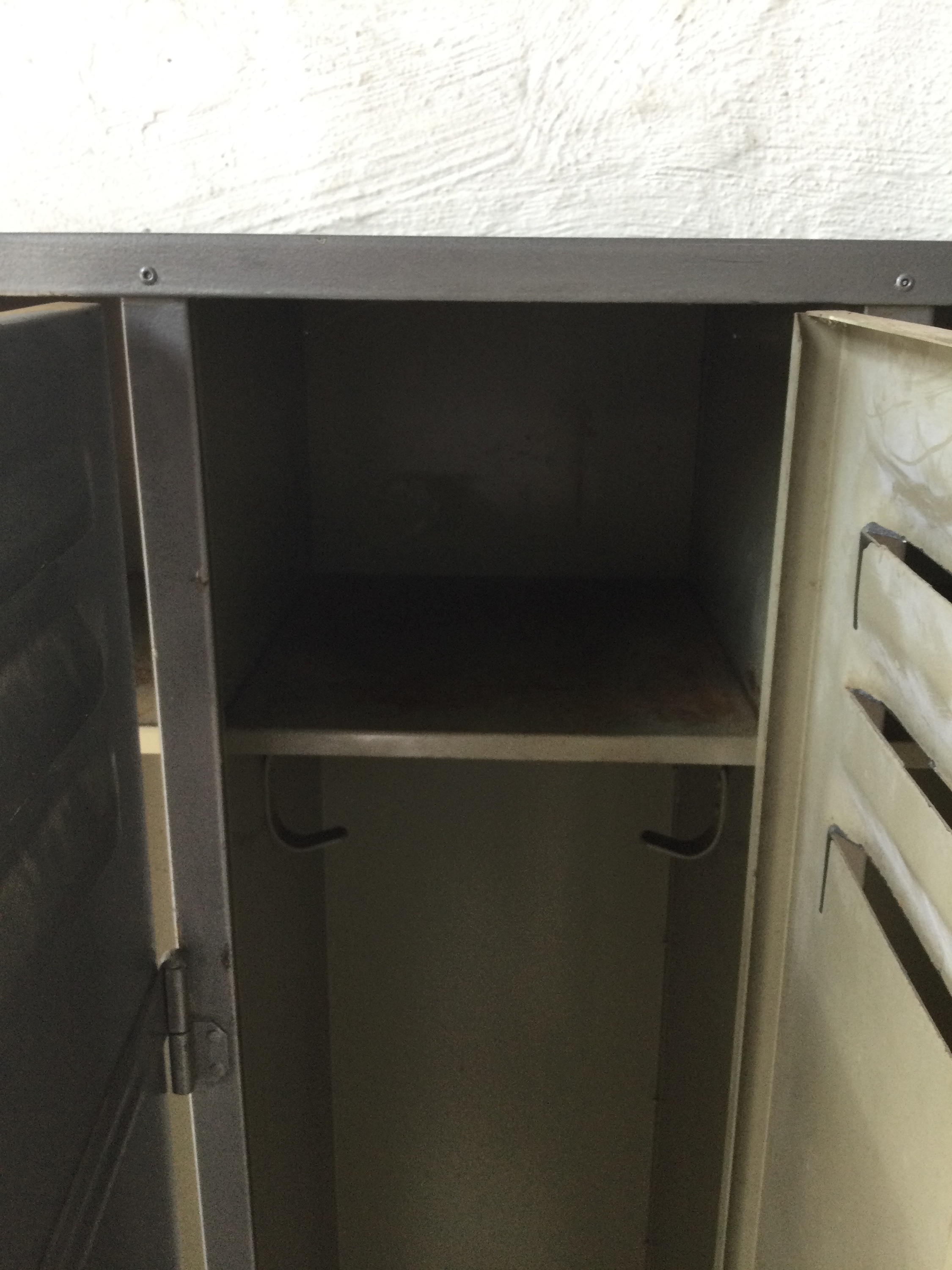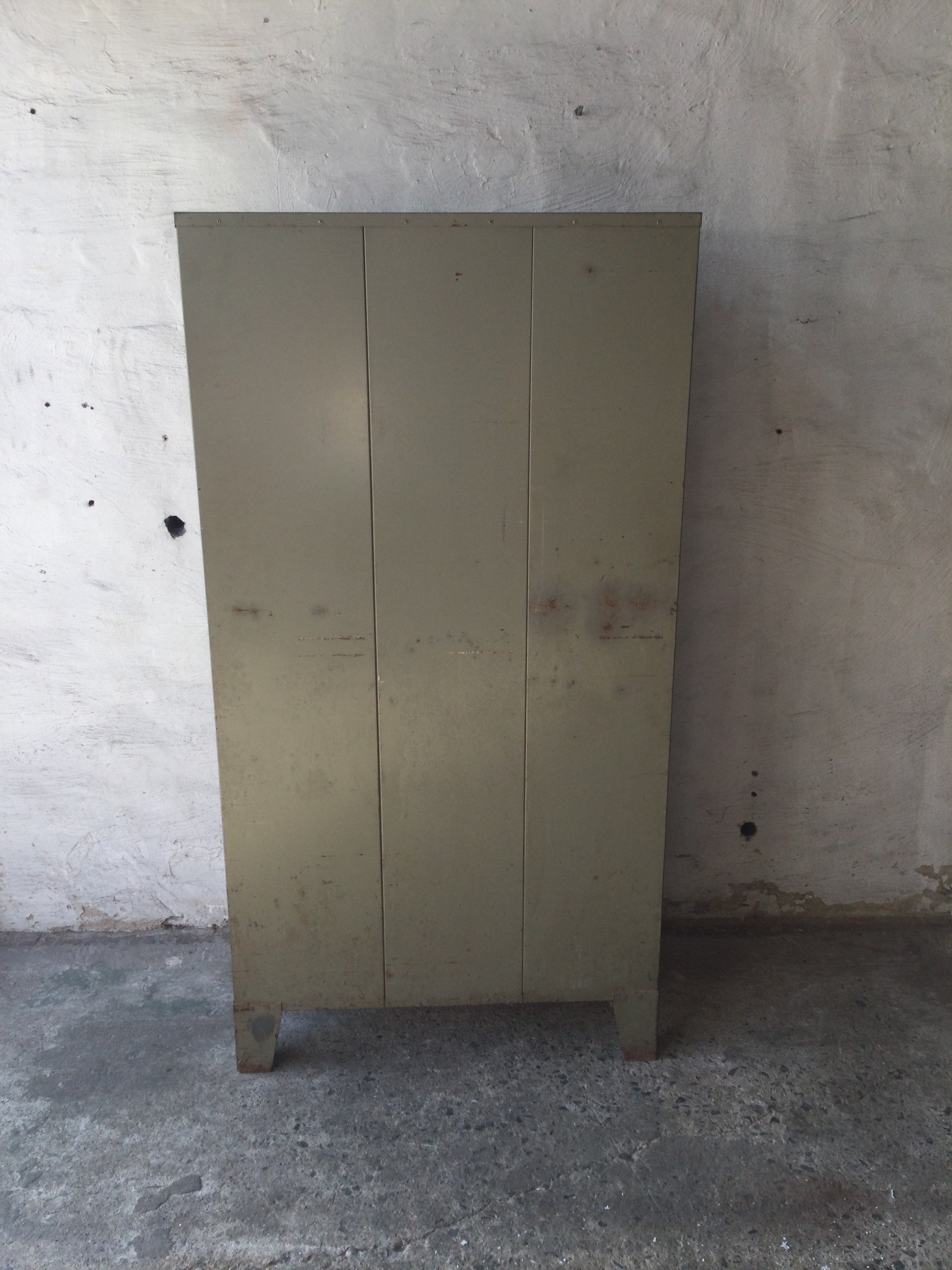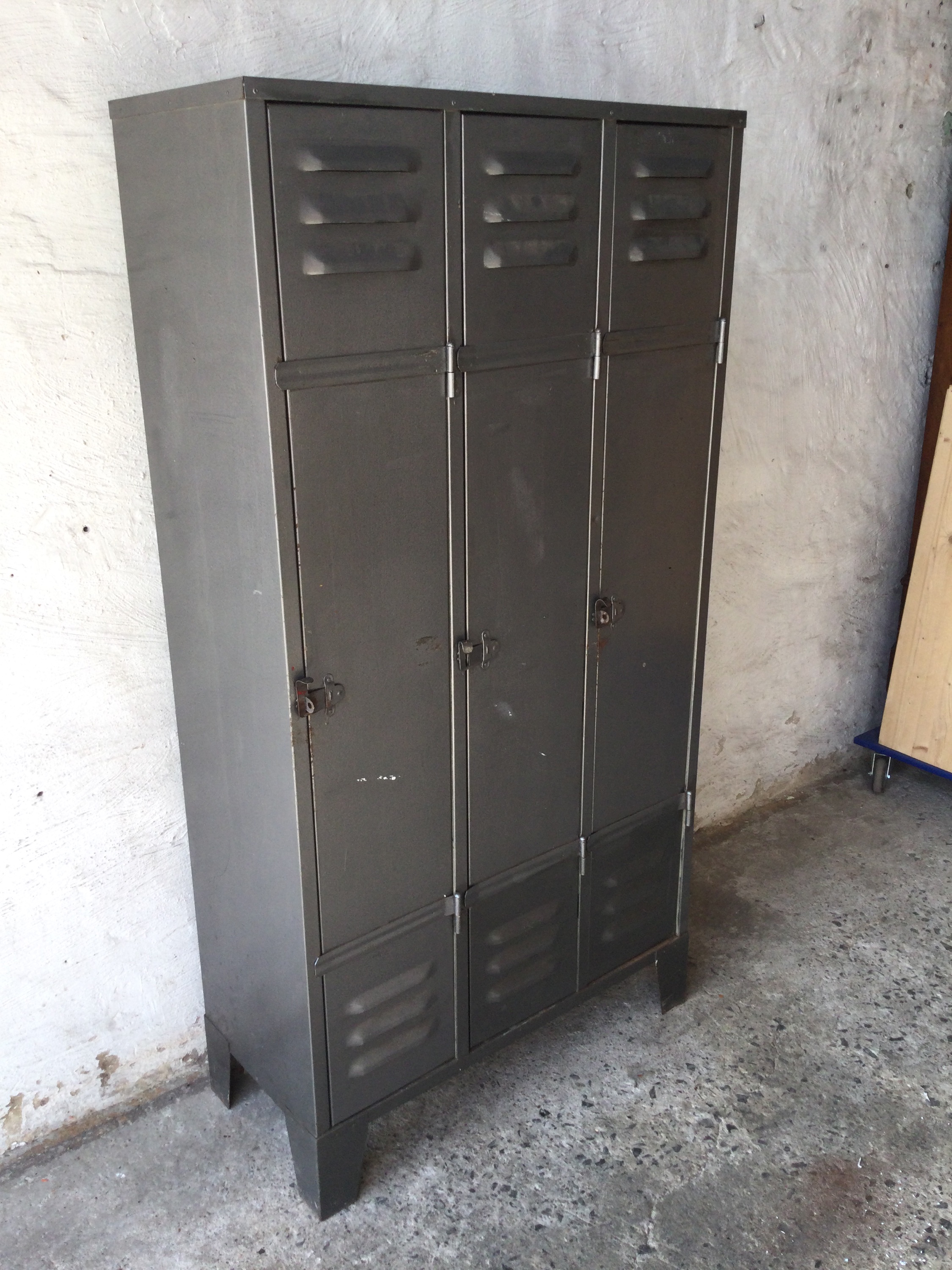 Three doors metal locker, rusty but still sturdy, one door has a missing lock as seen on the photos.