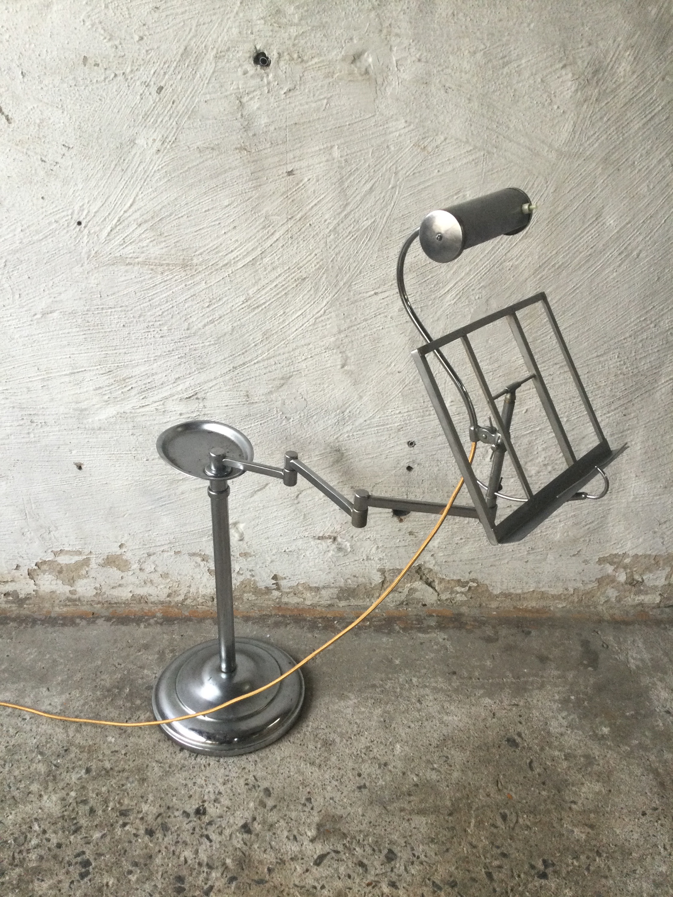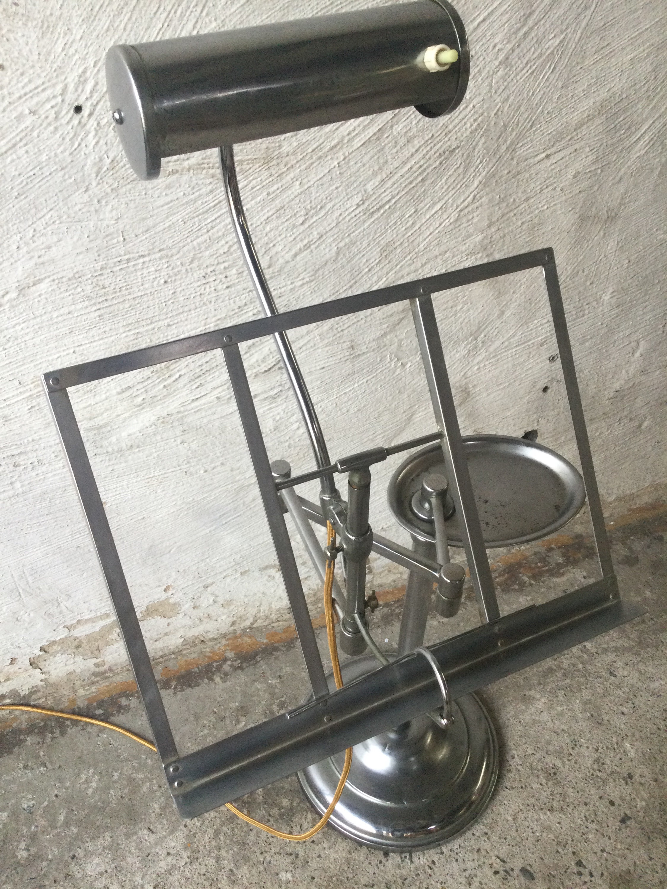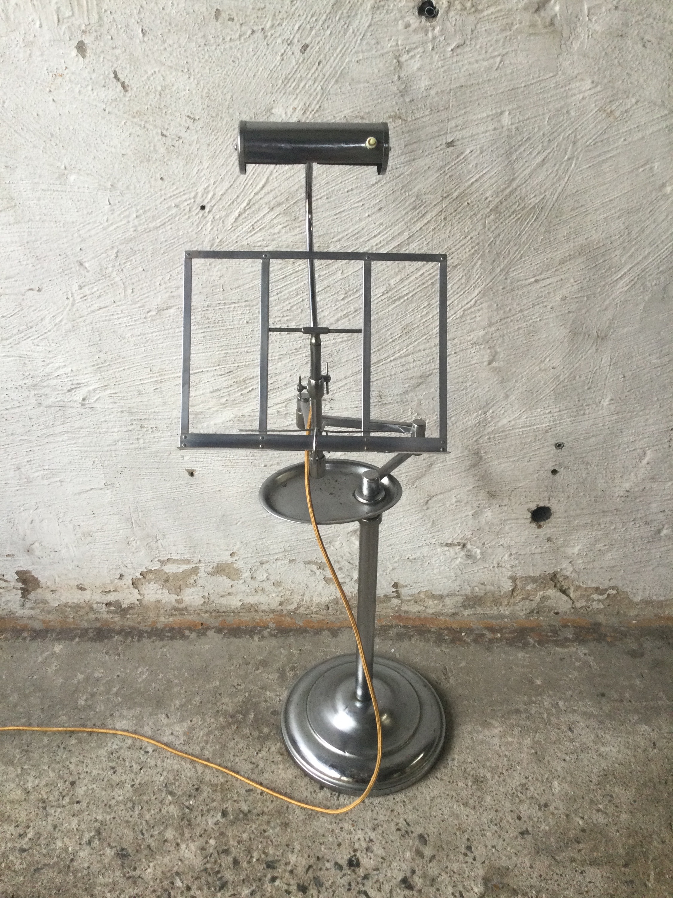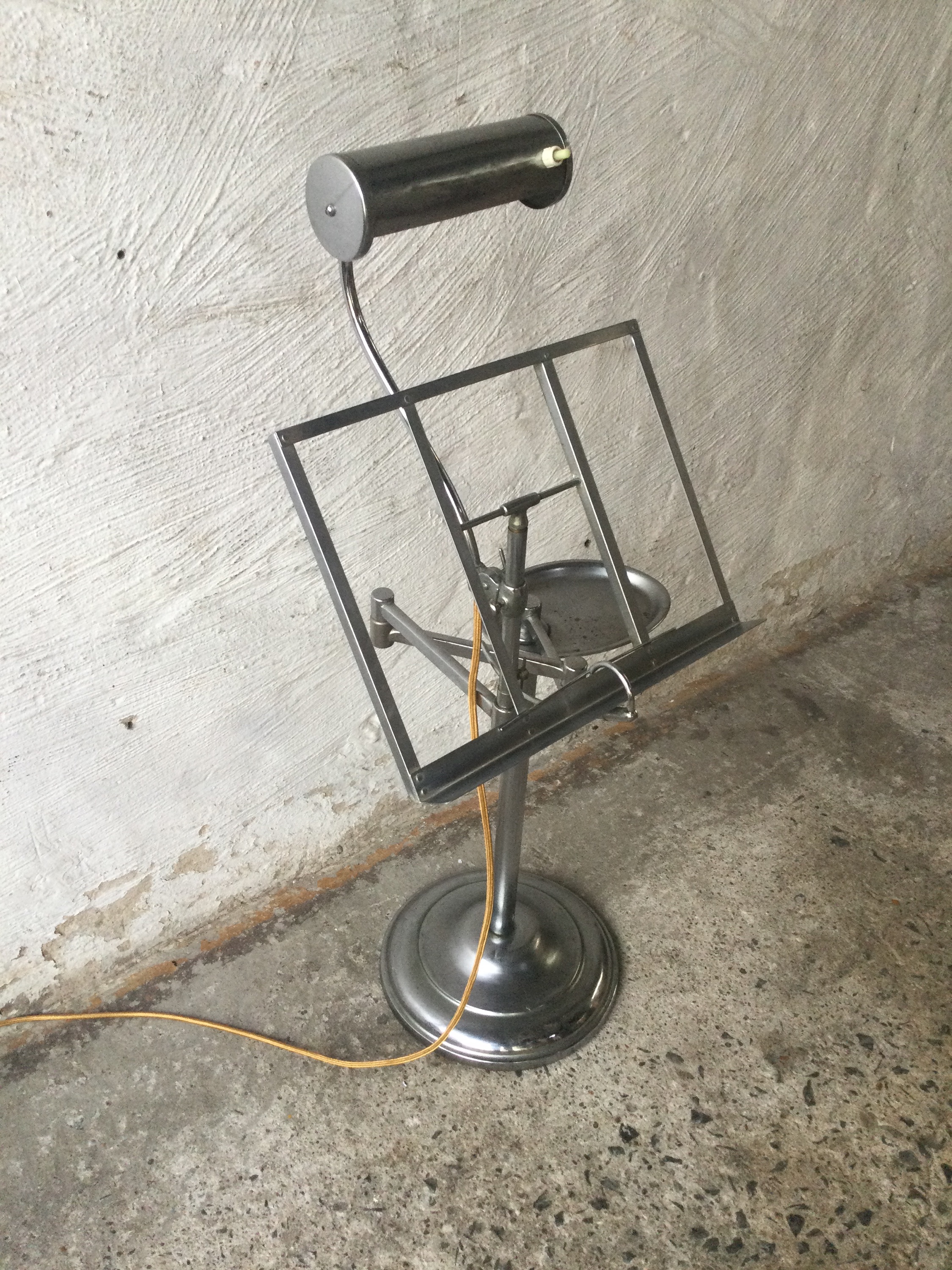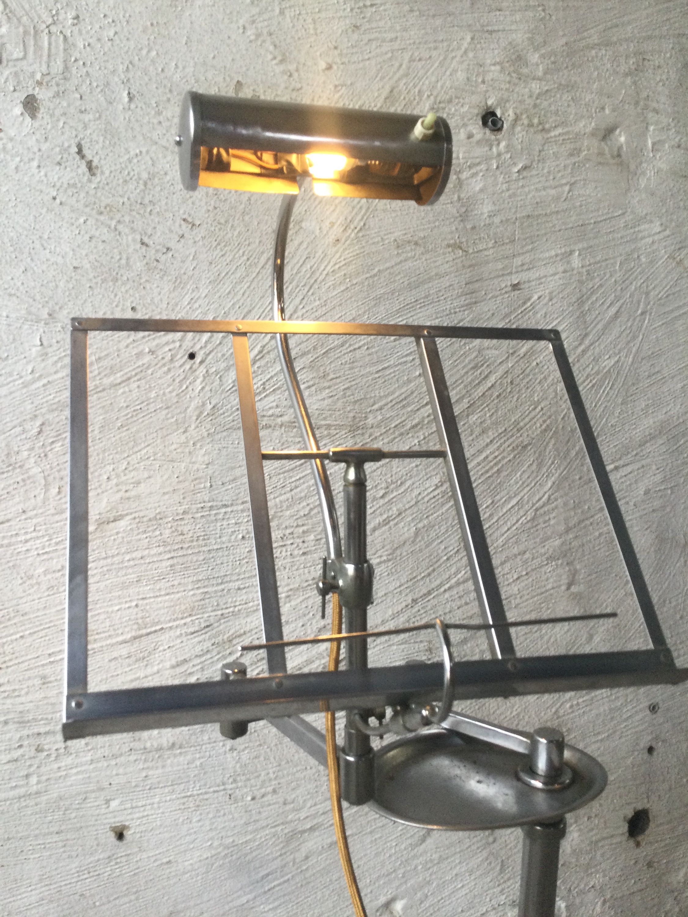 Music stand with light in chrome-plated metal as nickel-plated with a small light. 1930s