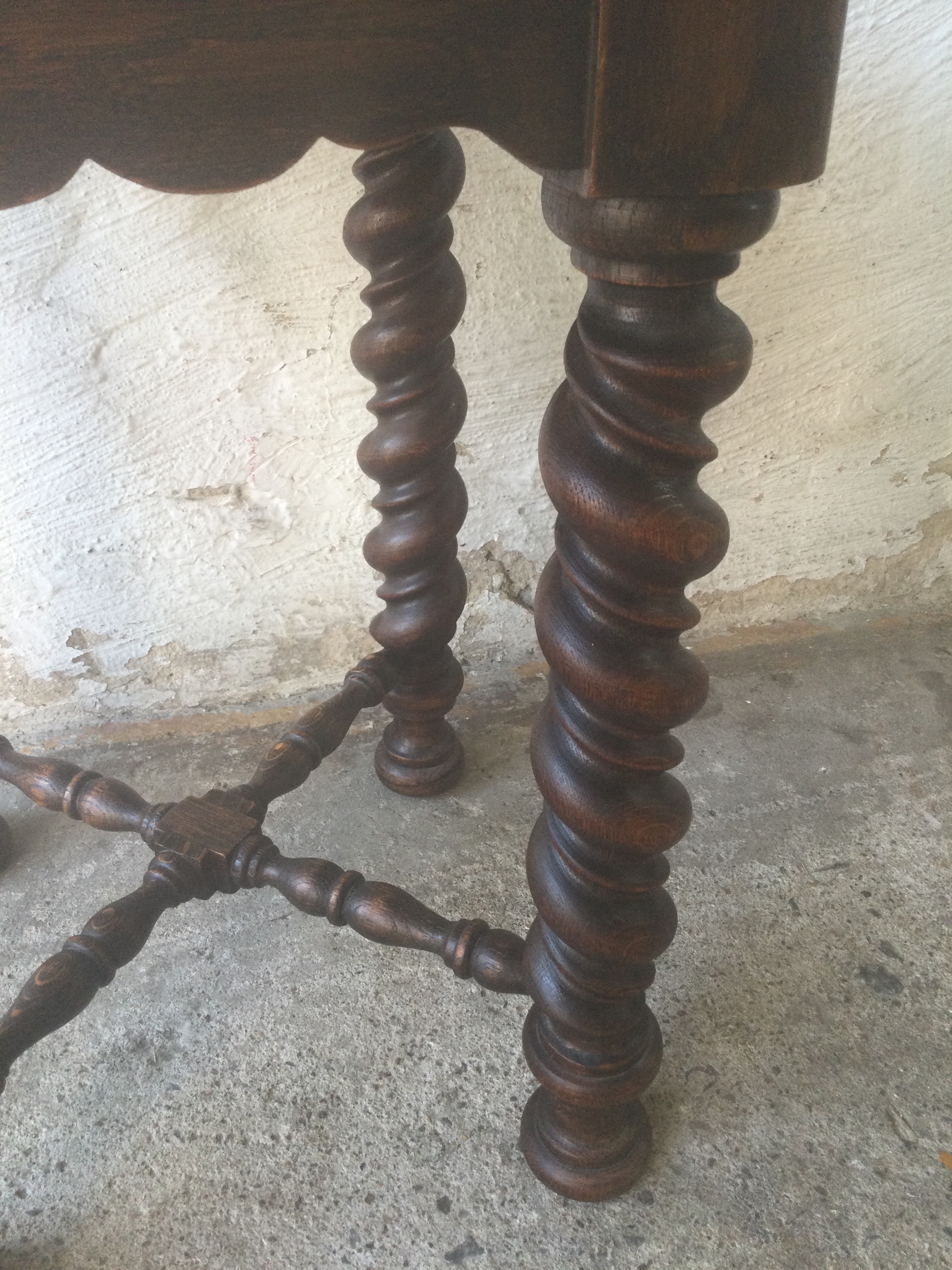 Wooden Pedestal table with turned legs.