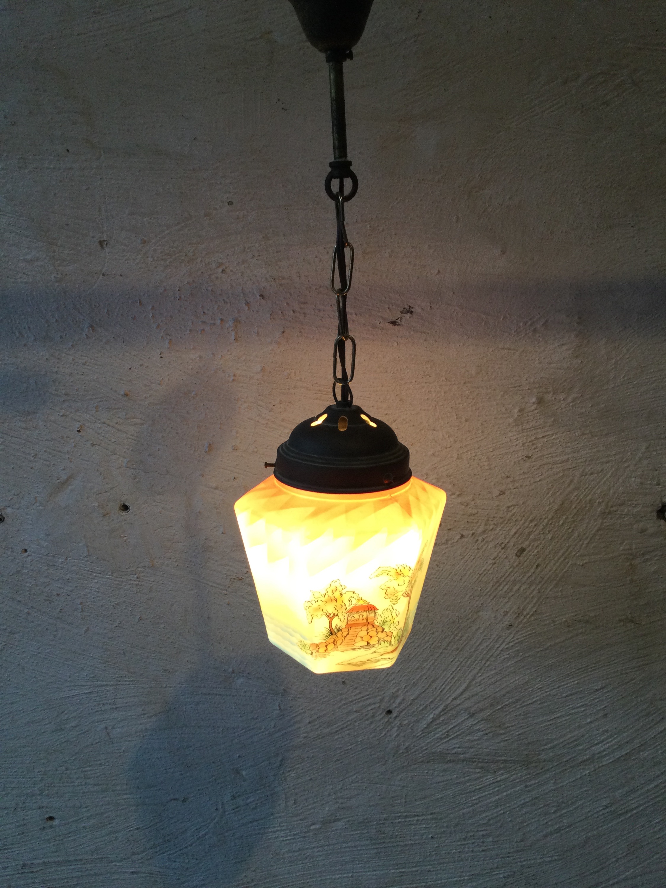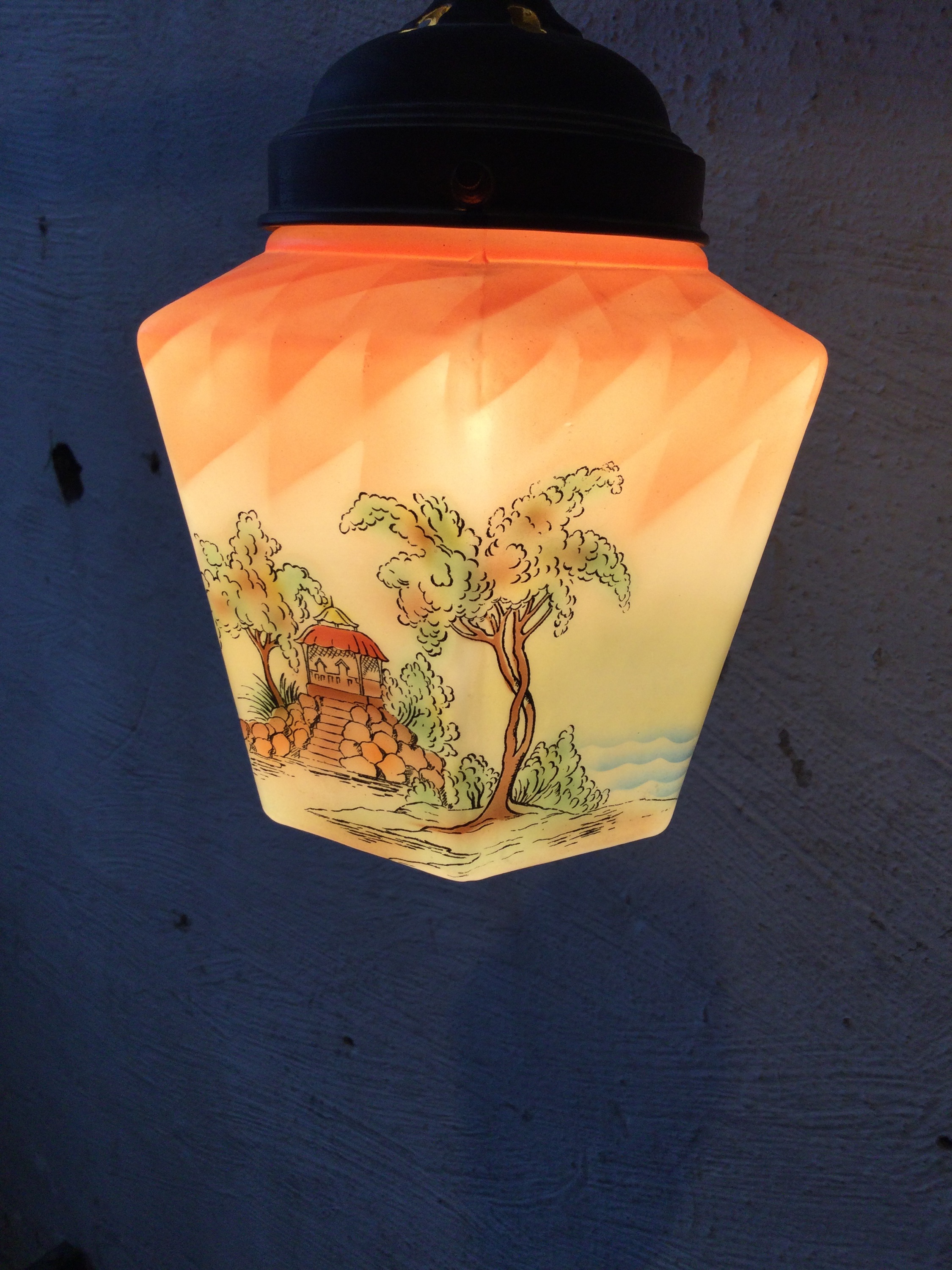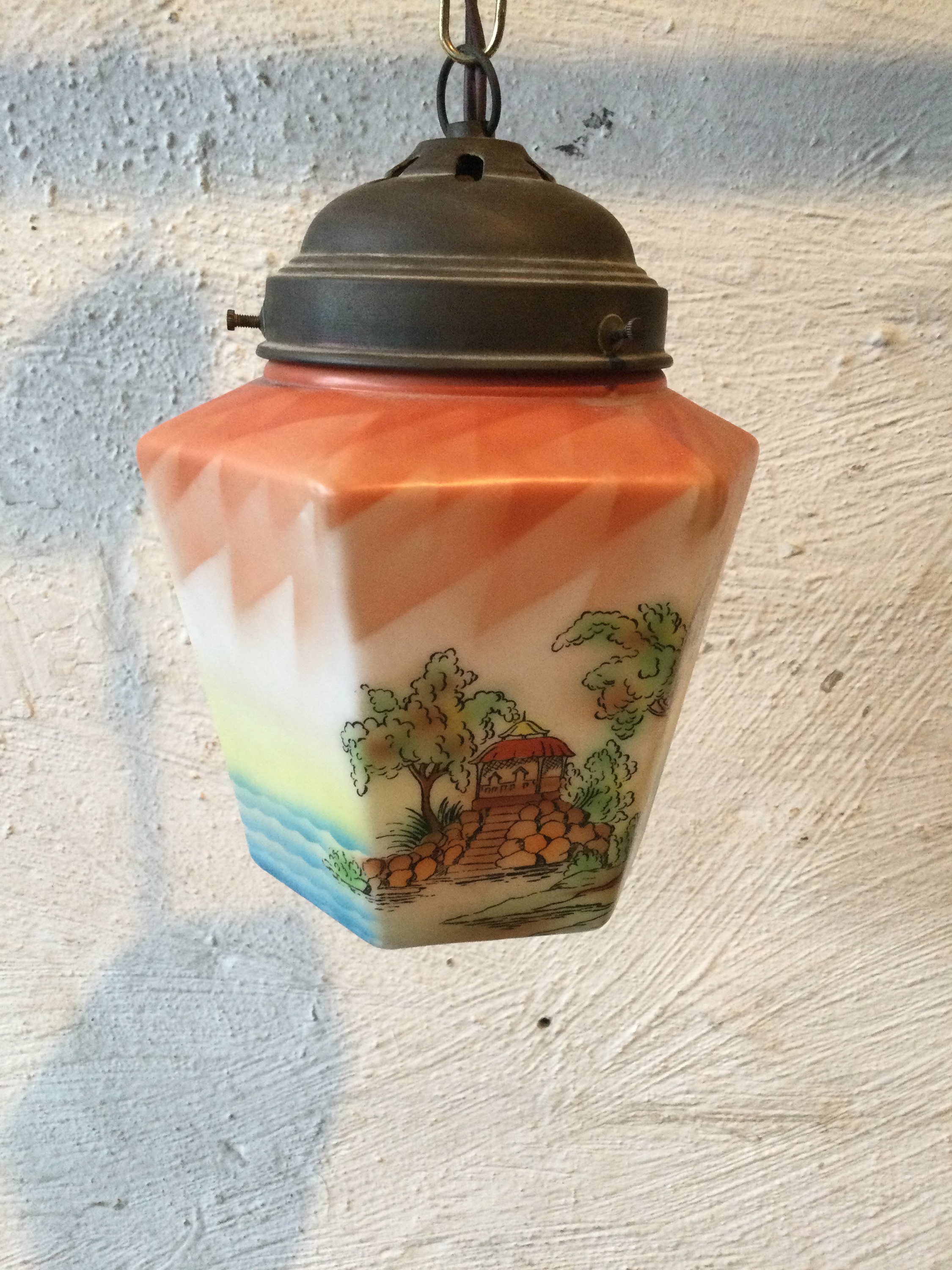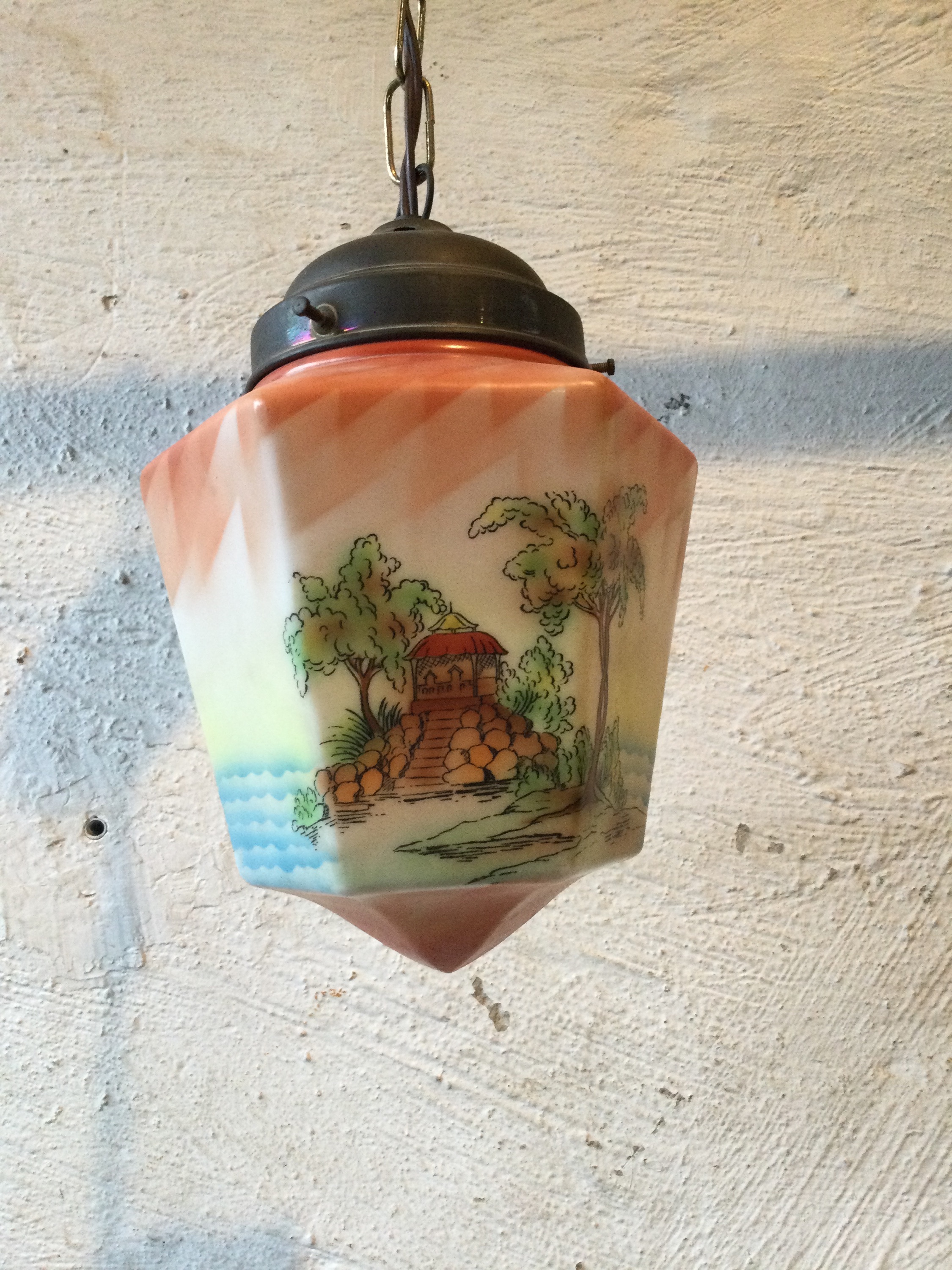Painted opaline pendant light, 1920s.