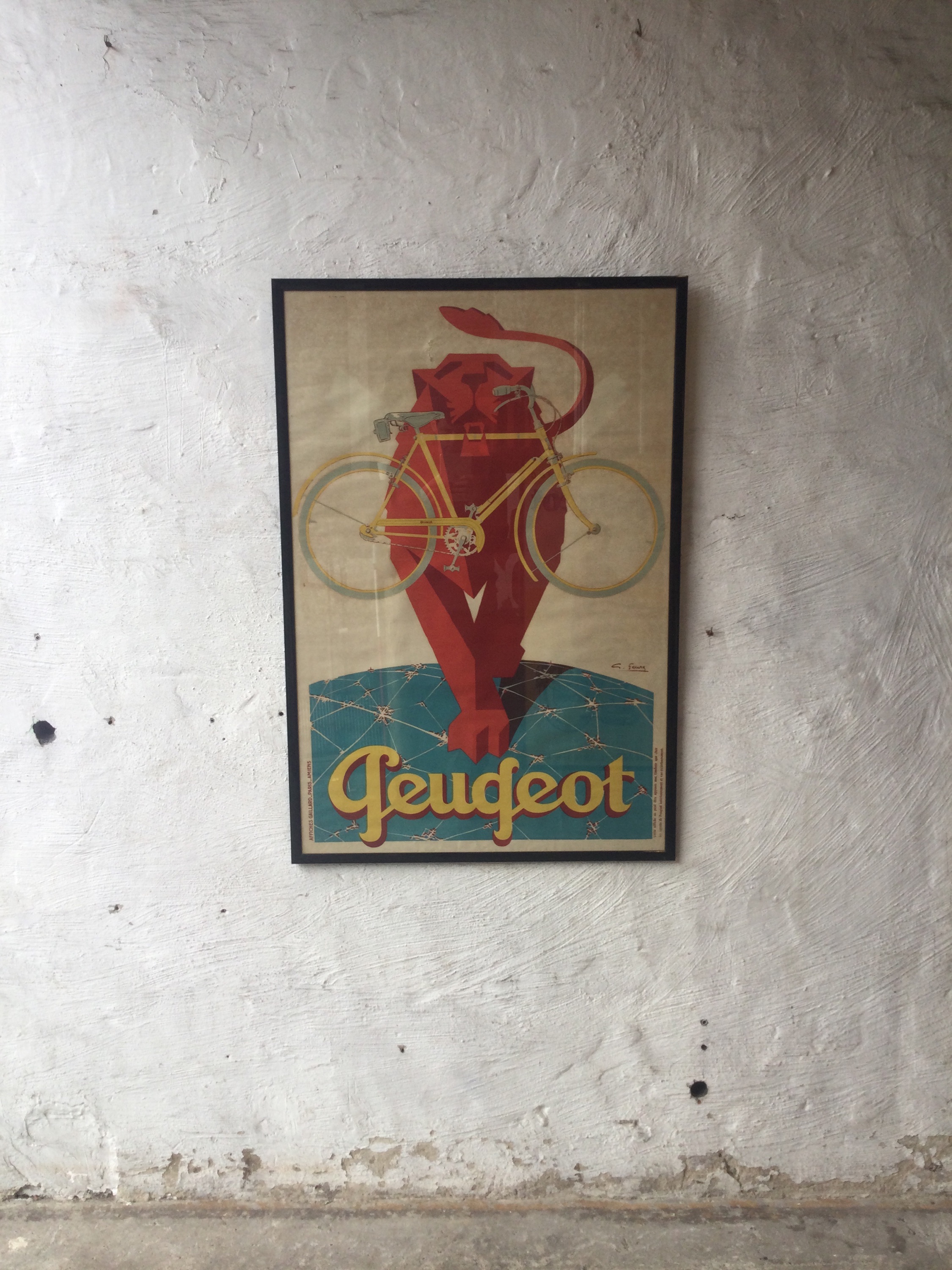 Original Poster of Peugeot 1928 in frame by Georges Favre.