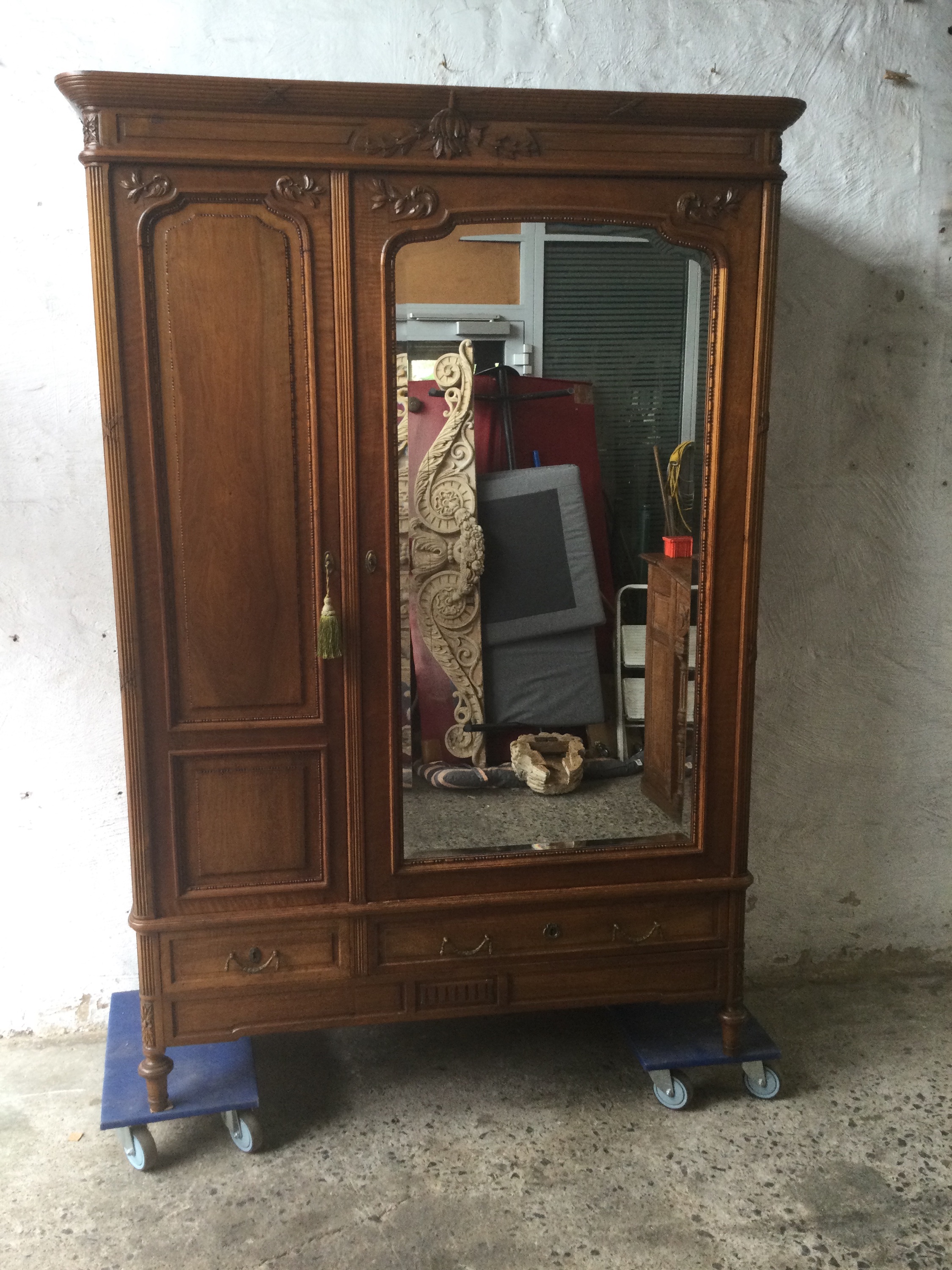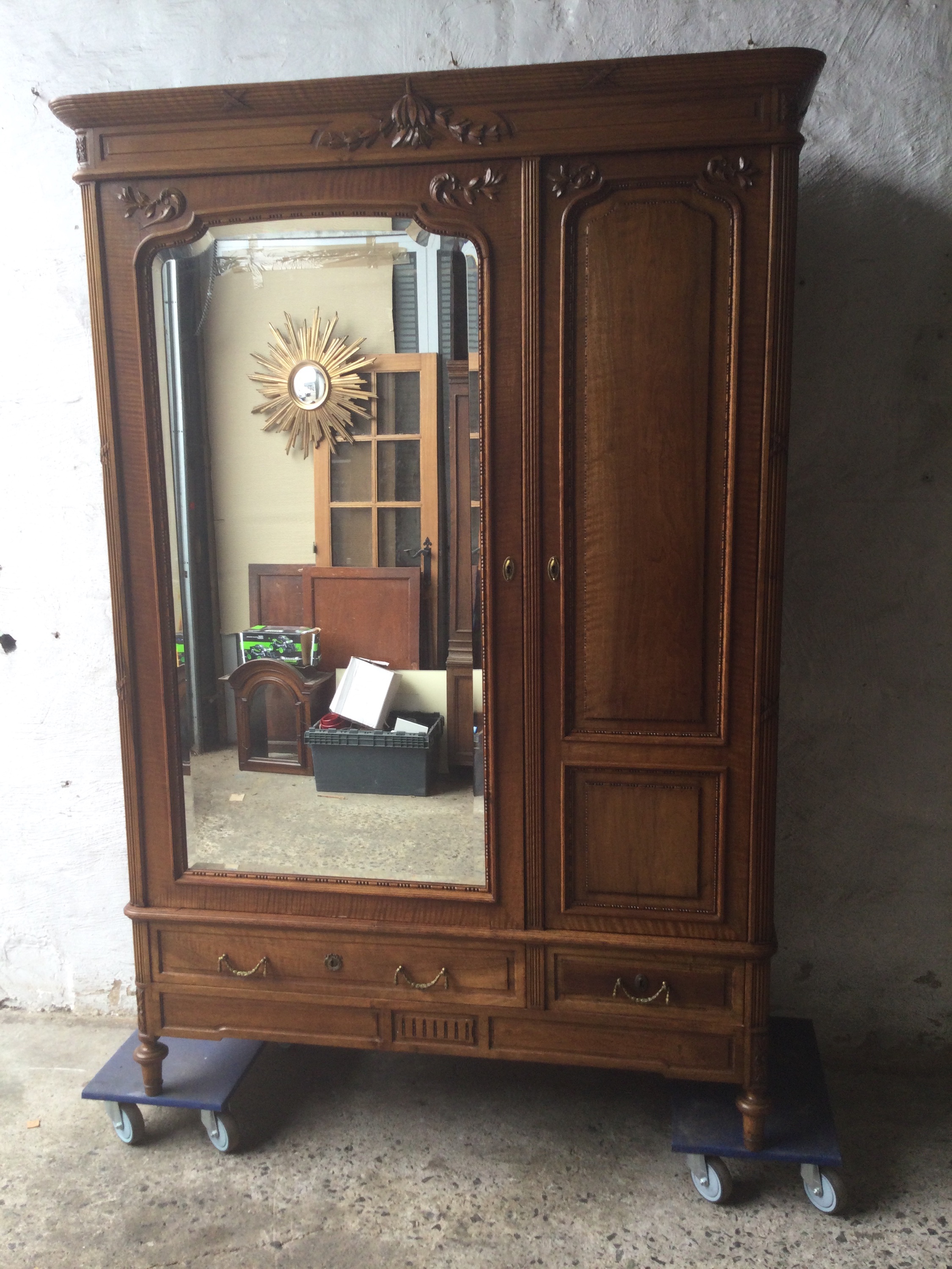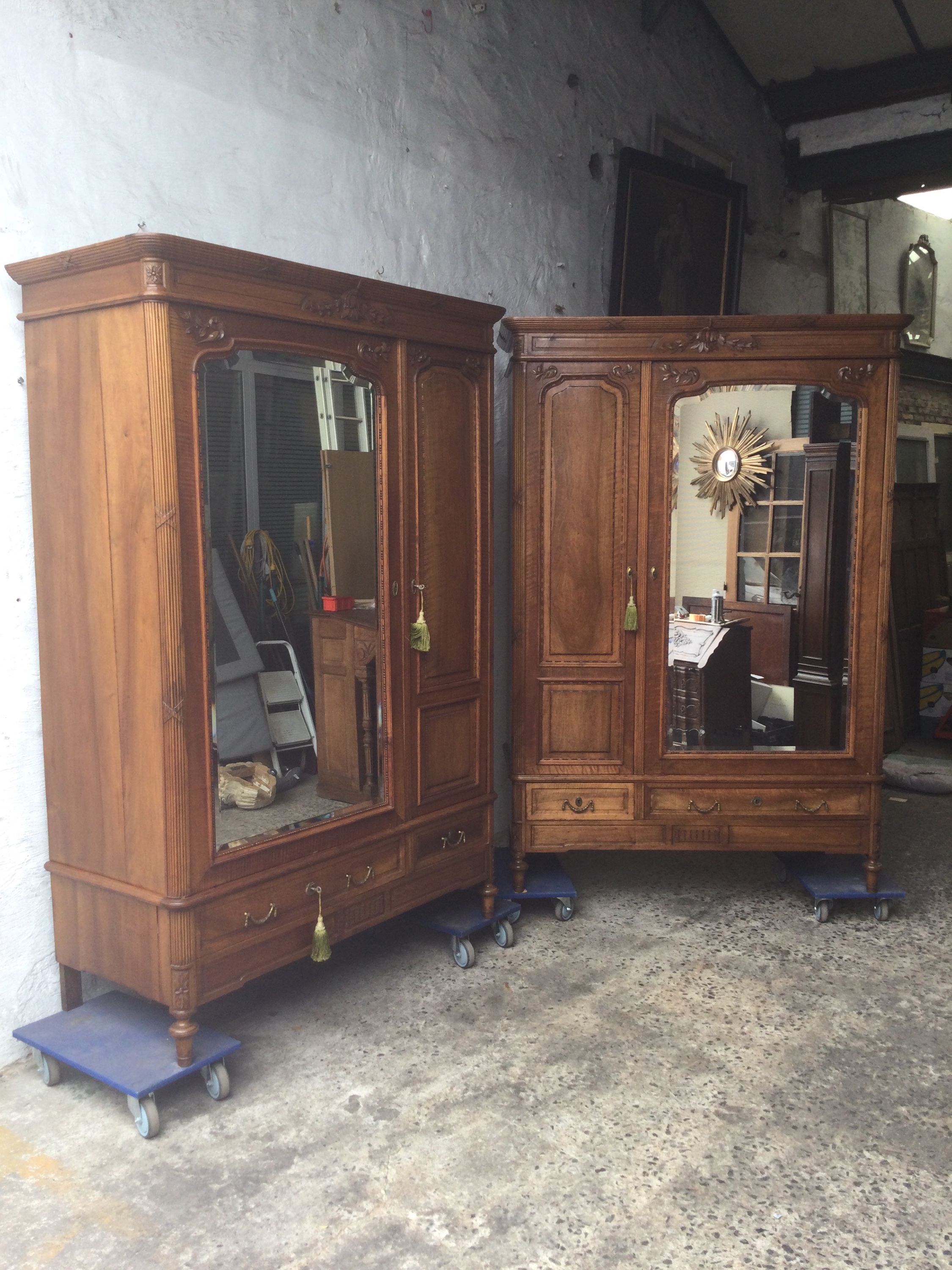 Set of two wardrobes Louis XVI , his and hers, the wardrobes has two mirrors each on the other sides. And they have both two drawers on the bottom , All keys are included.
