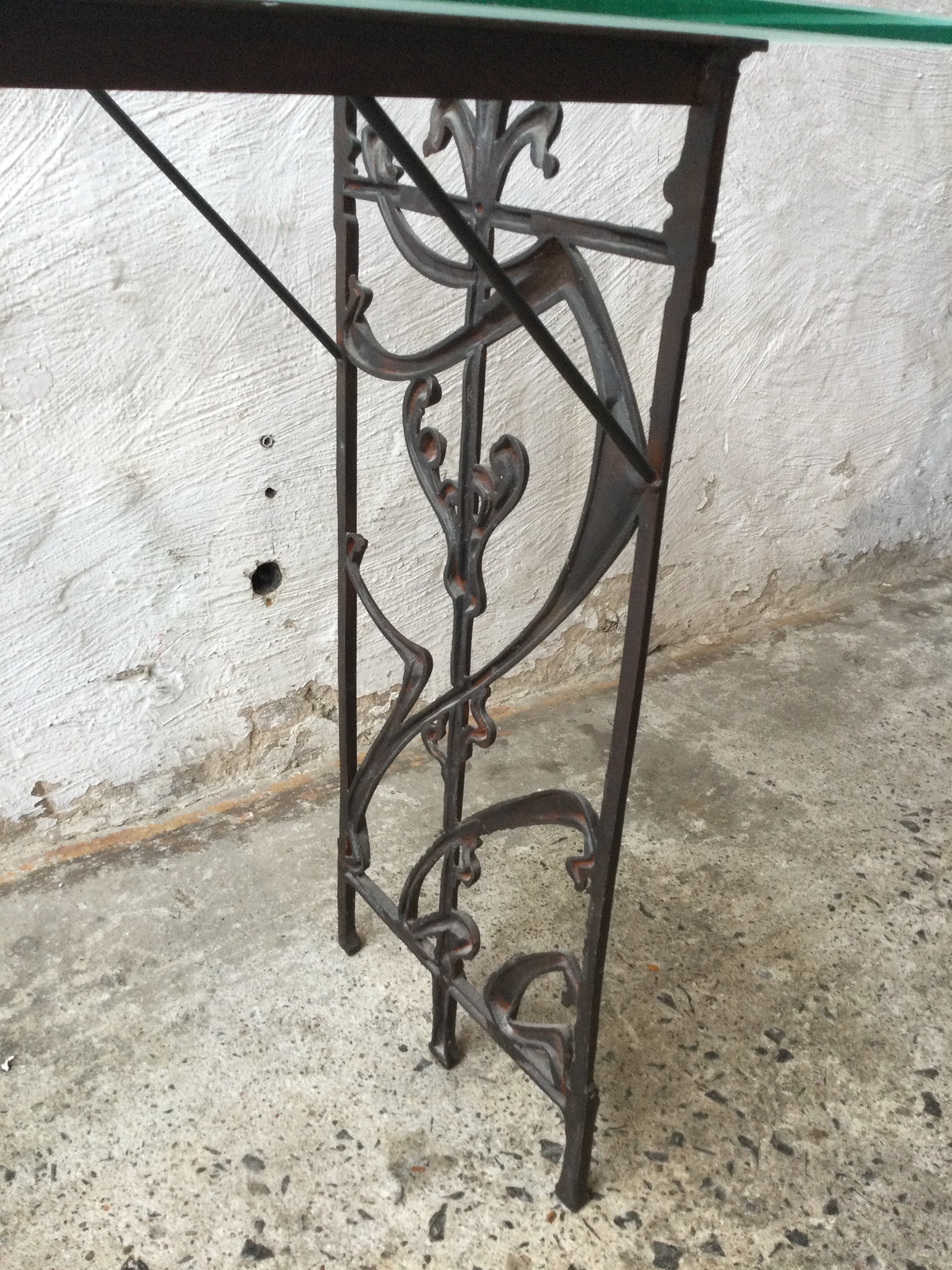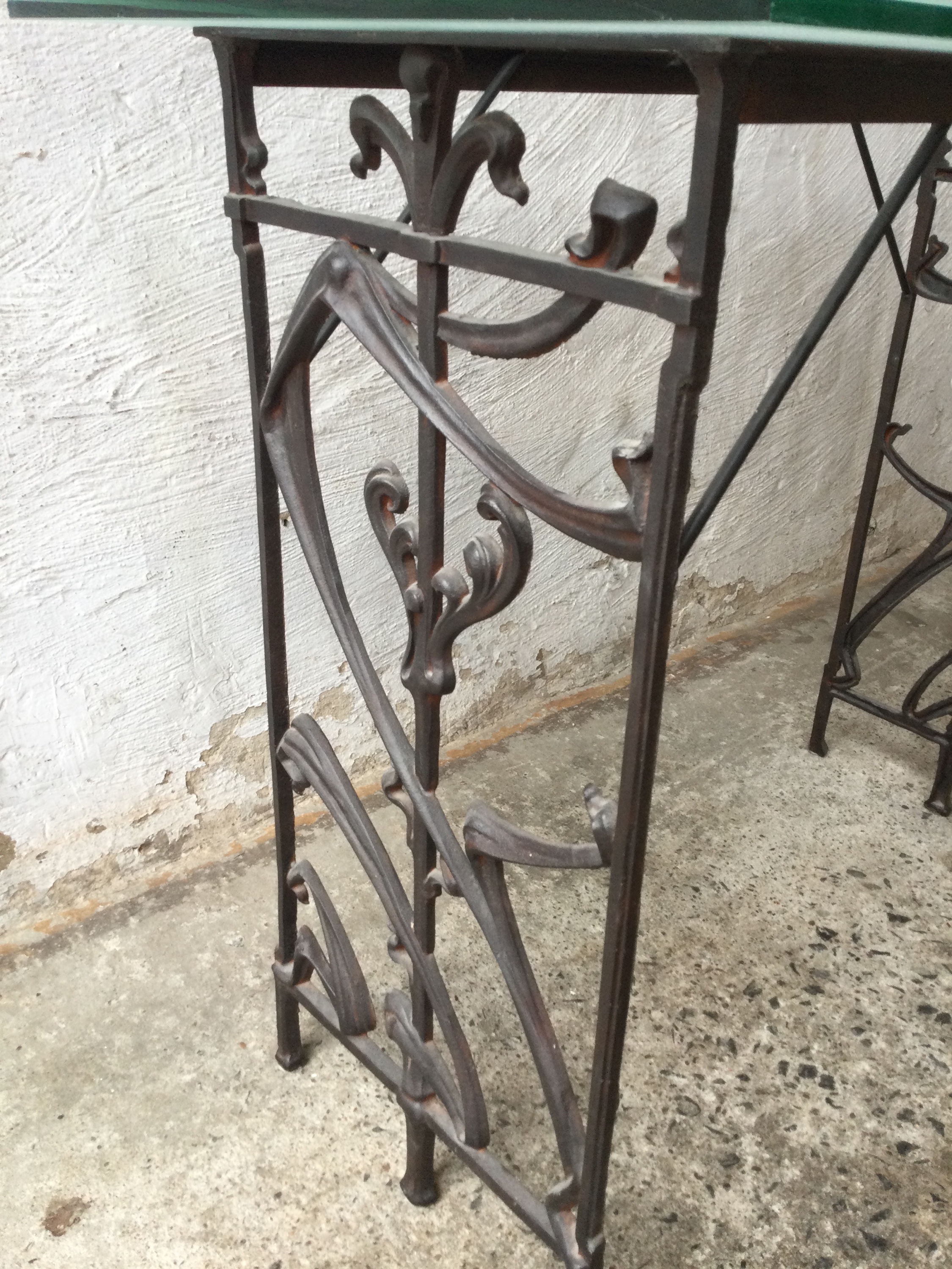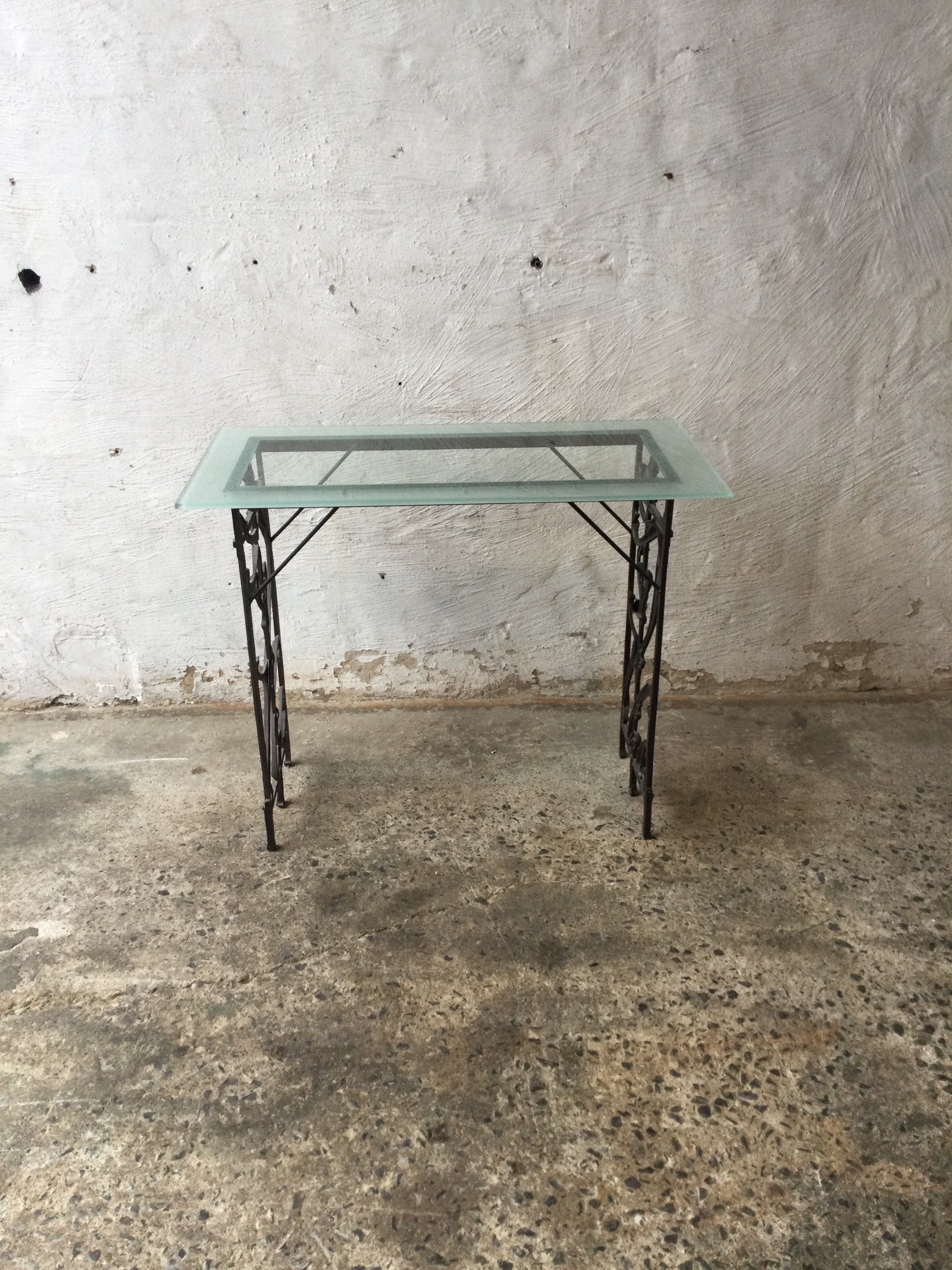 Sidetable Art Noveau style with sandglasses top and metal base.