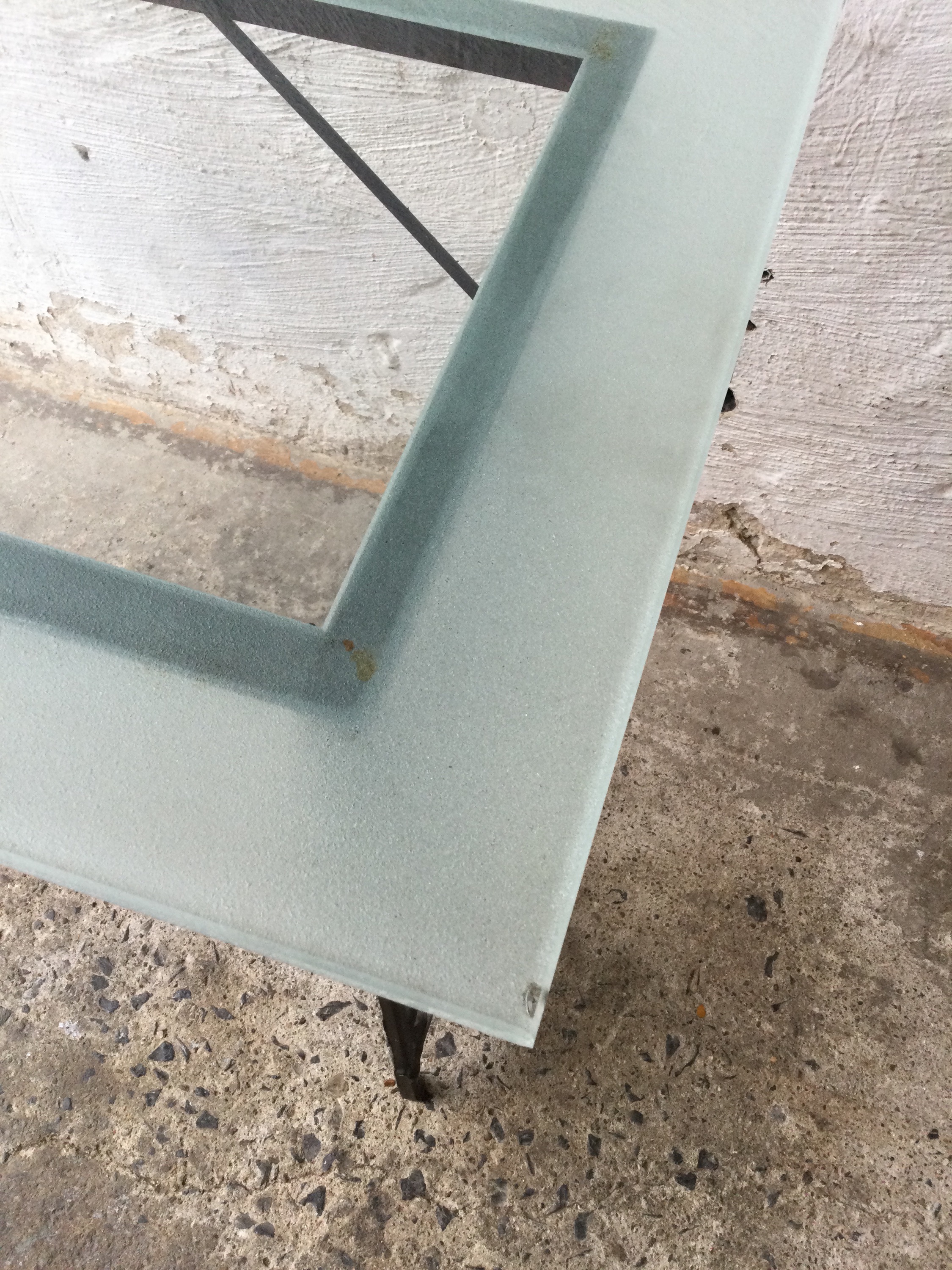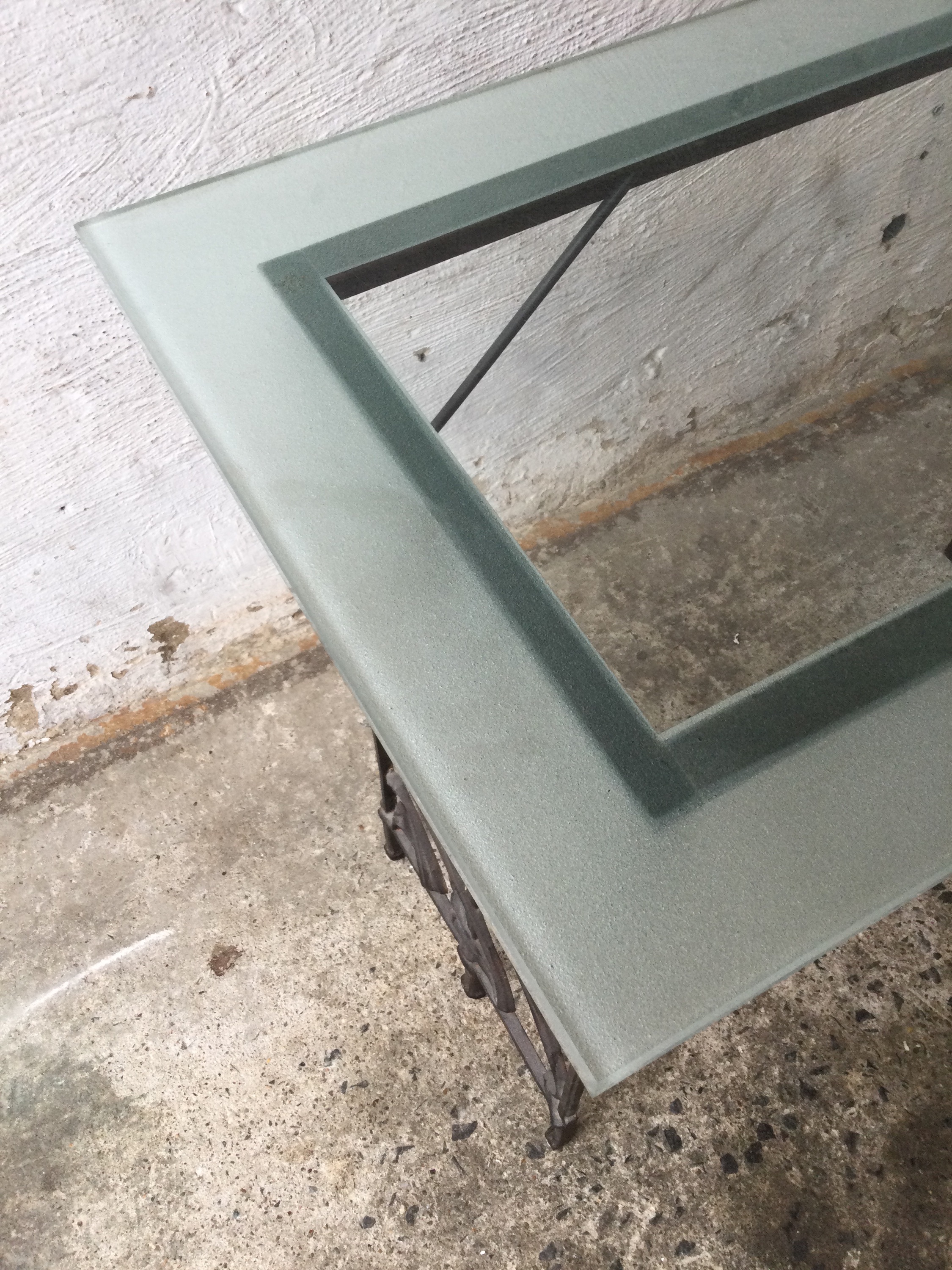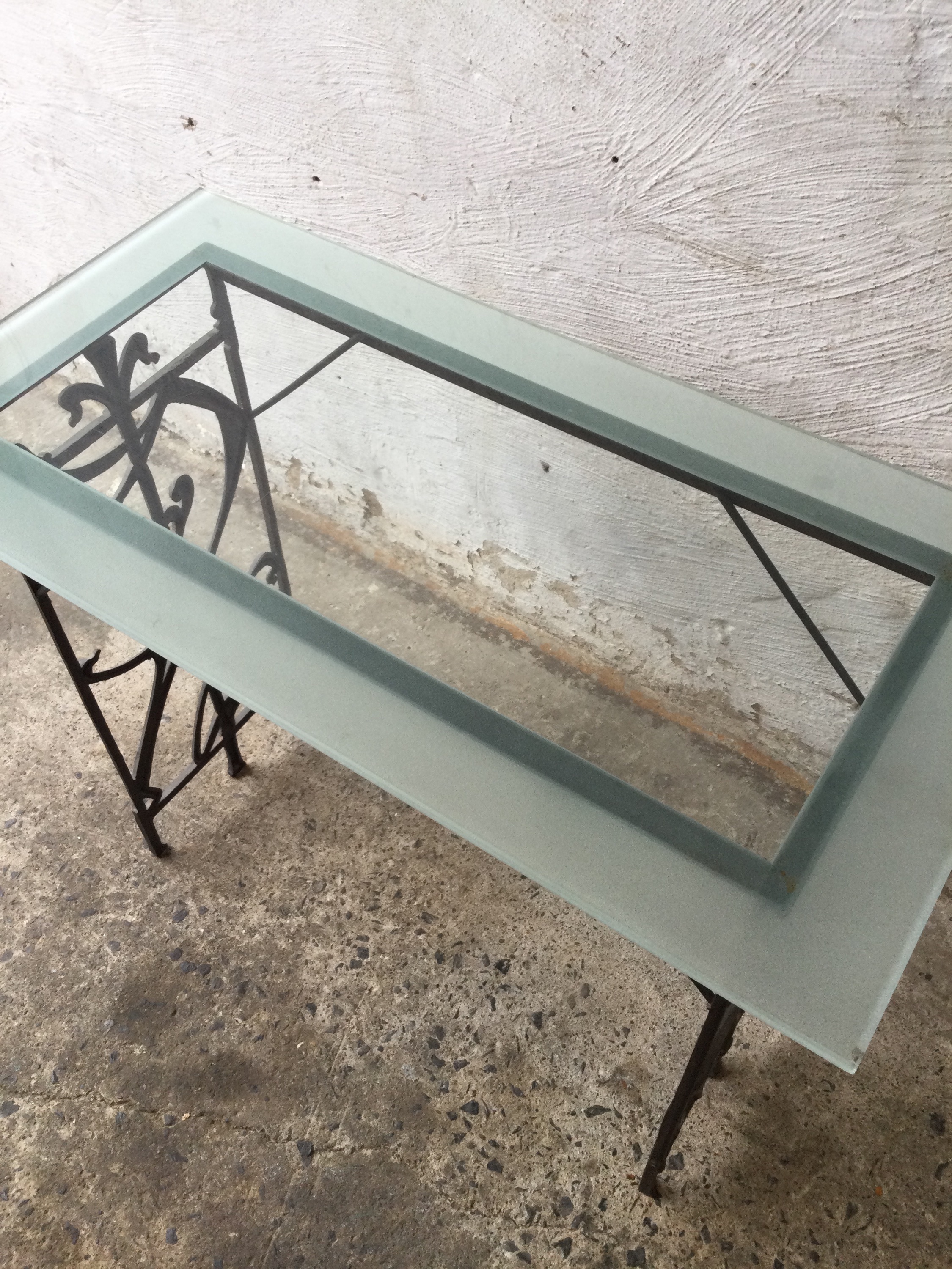 Sidetable Art Noveau style with sandglasses top and metal base.