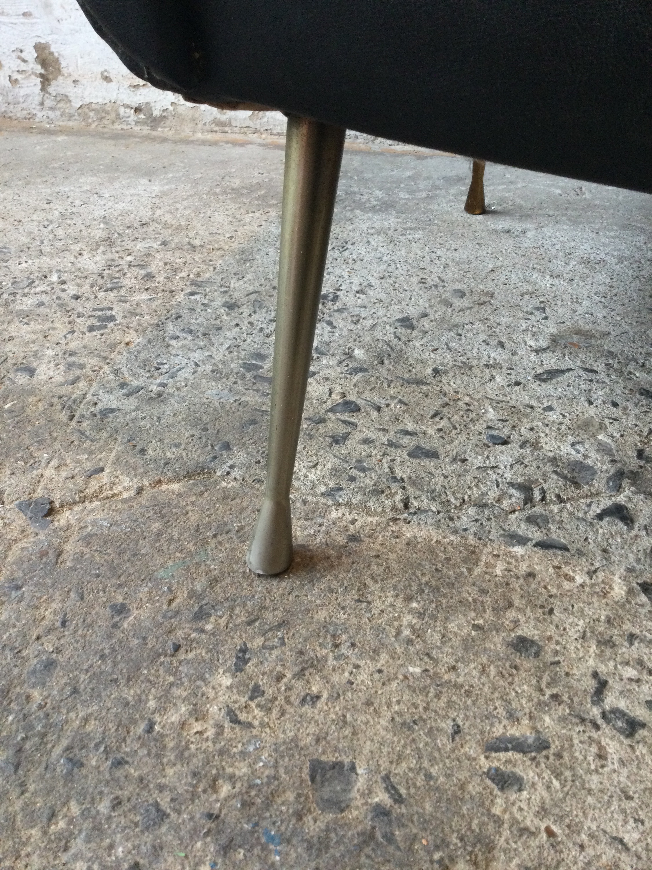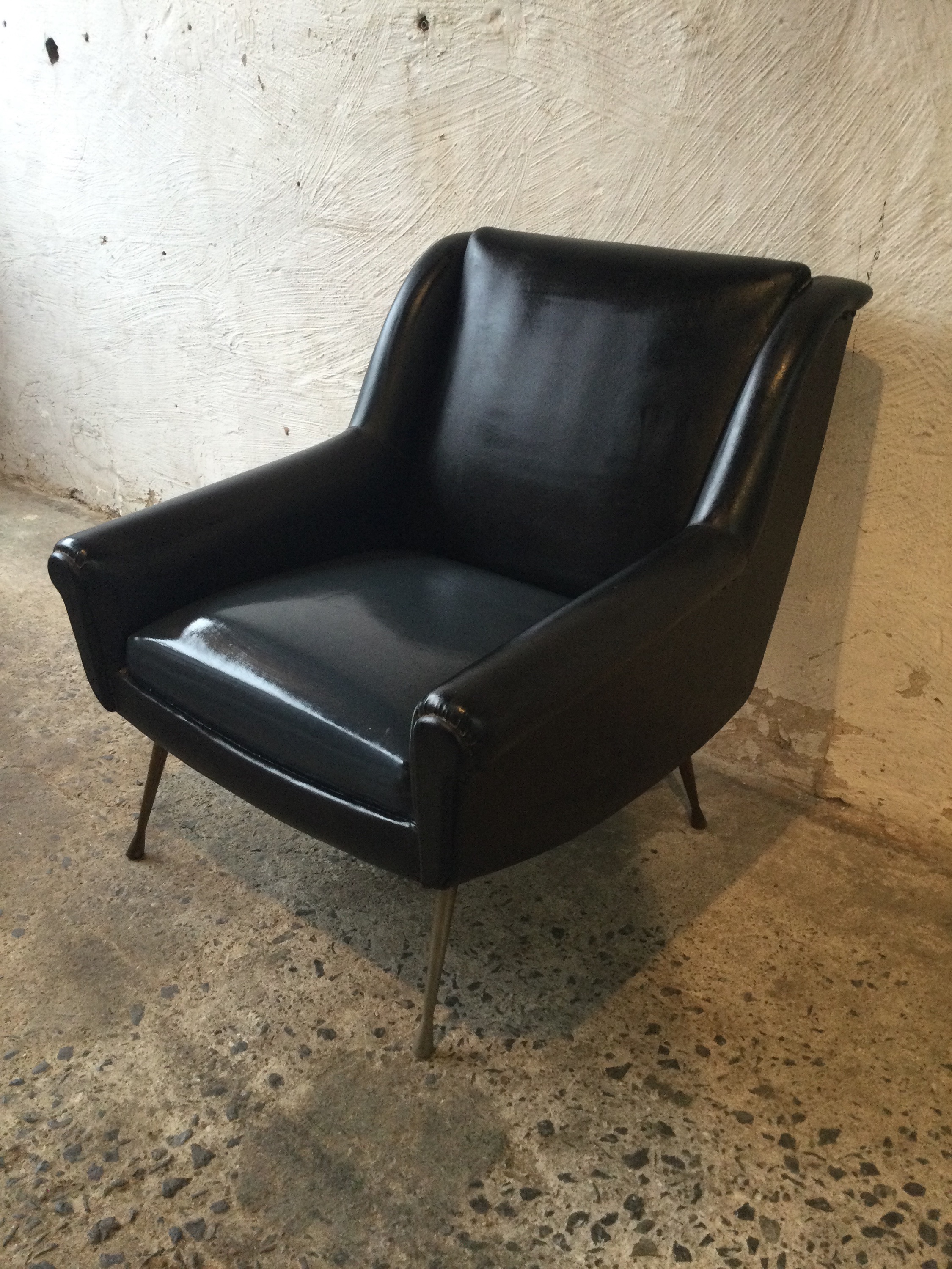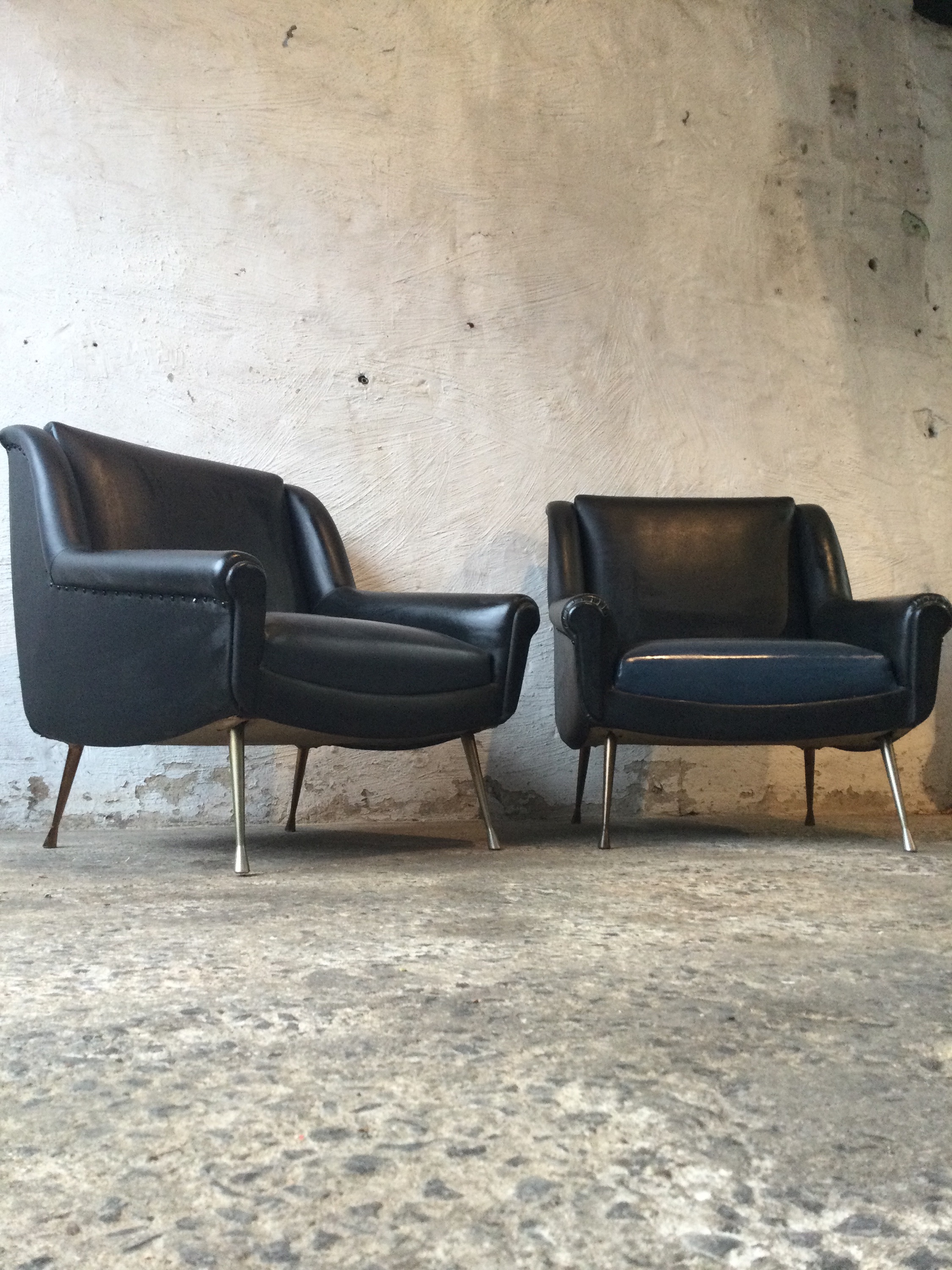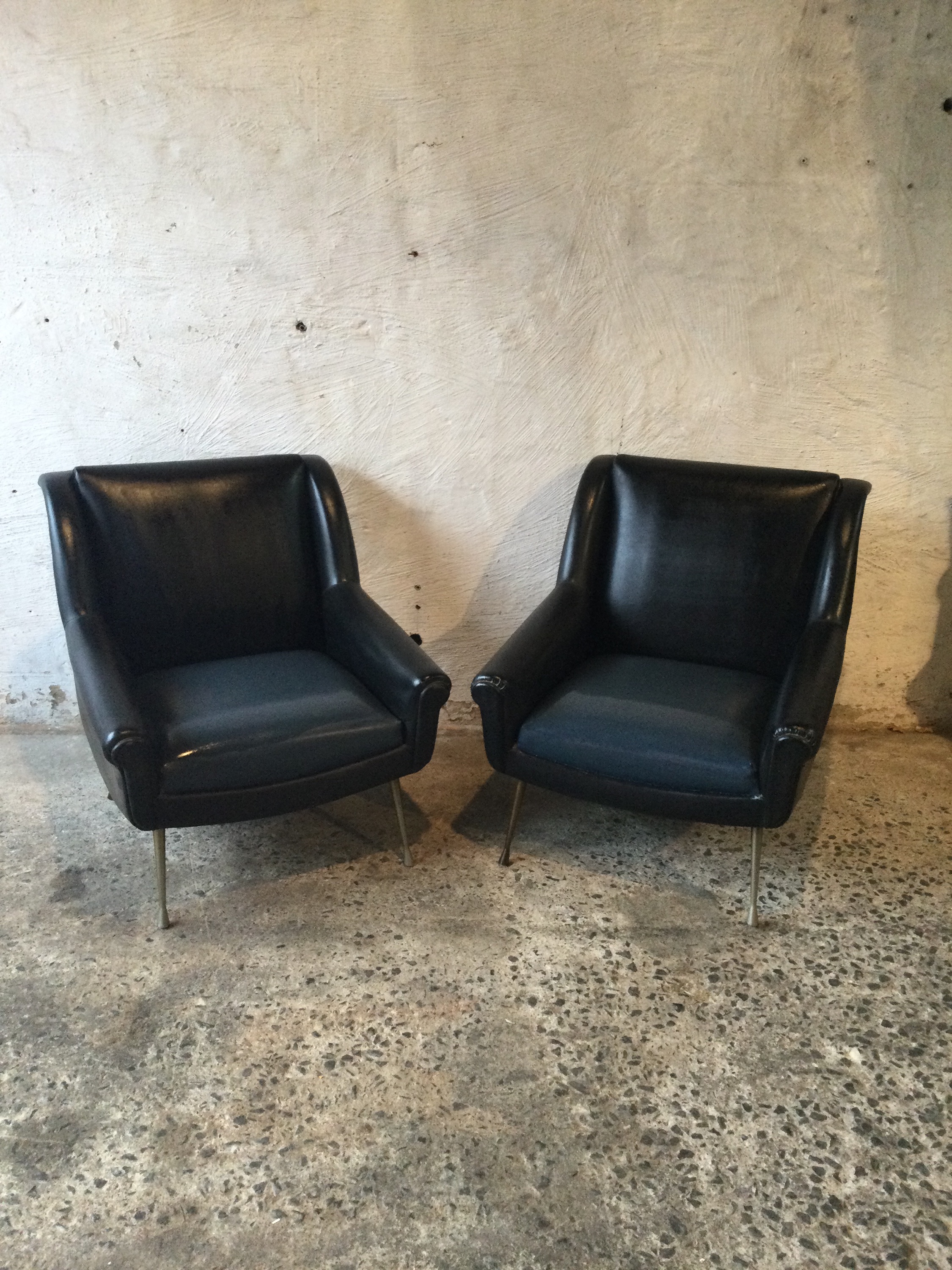 Set of Vintage lounge chairs in black and navy blue skai leather,