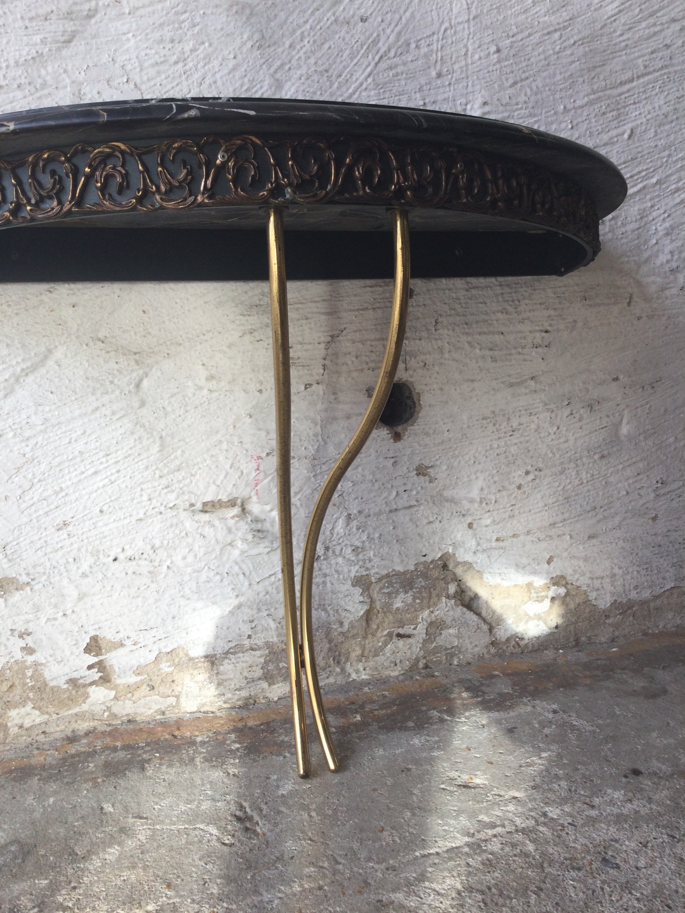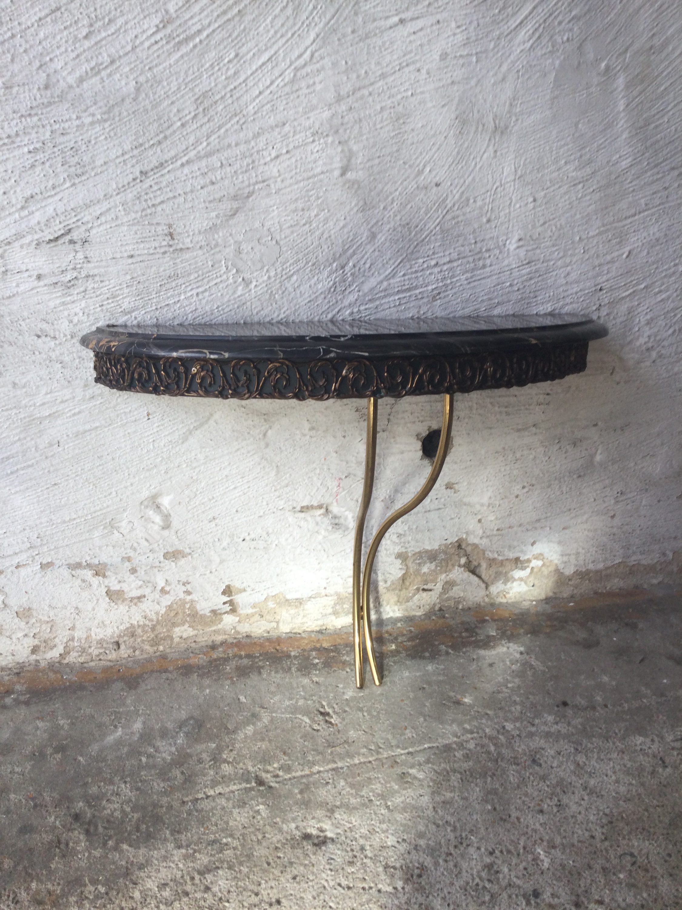 Small floating wall console table with marble top.