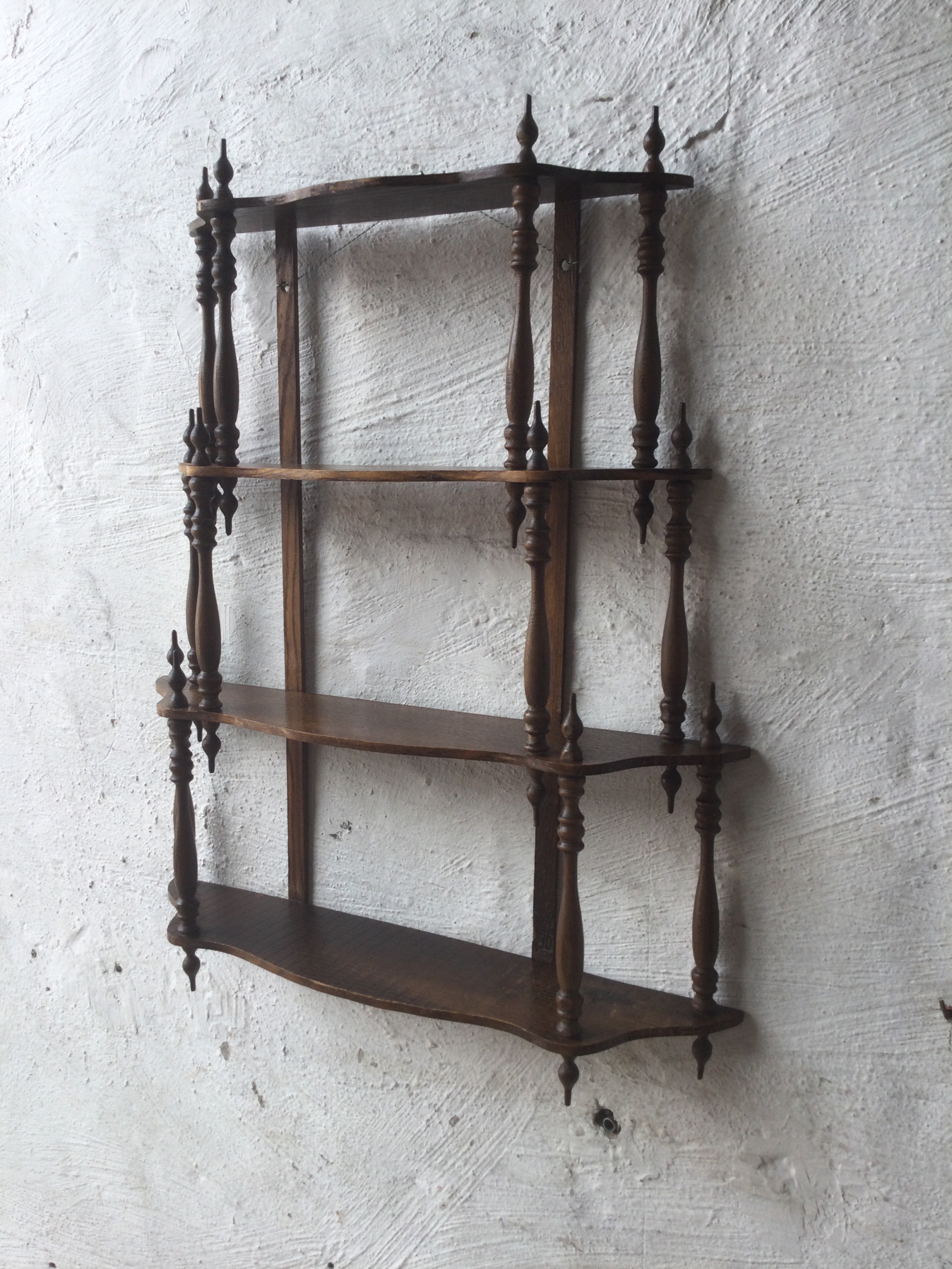 Wooden wall rack for spices and vinegars. With four shelves